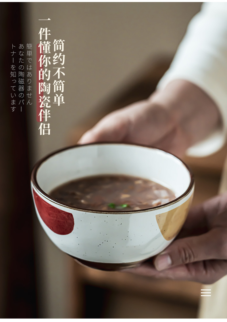 创意手绘陶瓷碗创意斑点家居日用早餐粥汤碗一人食面碗圆形米饭碗