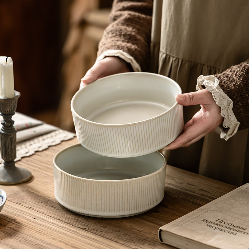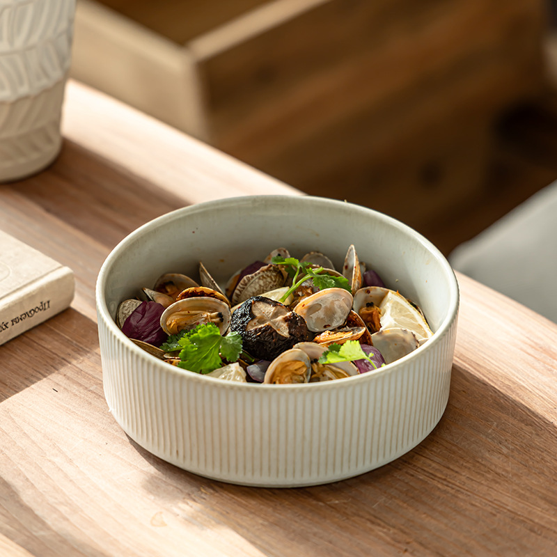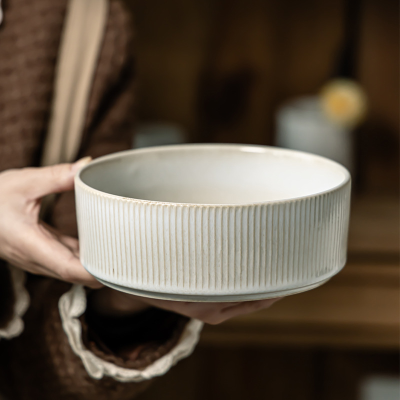 窑变款直身碗沙拉碗复古陶瓷碗日式浮雕餐具碗批发家用菜碗圆形碗