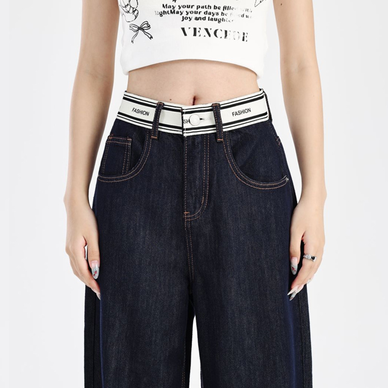 蓝色天丝阔腿牛仔裤女夏高腰小个子垂感直筒裤超软松弛感凉凉裤子