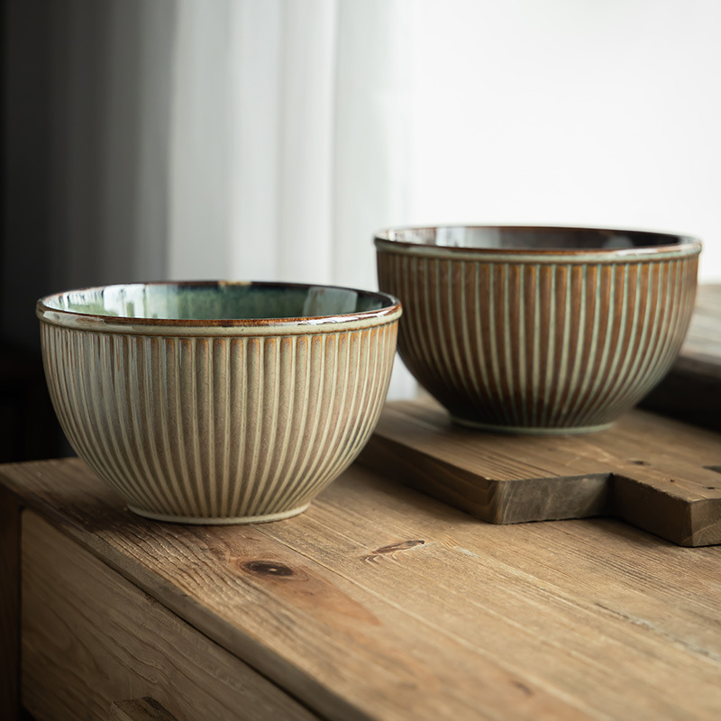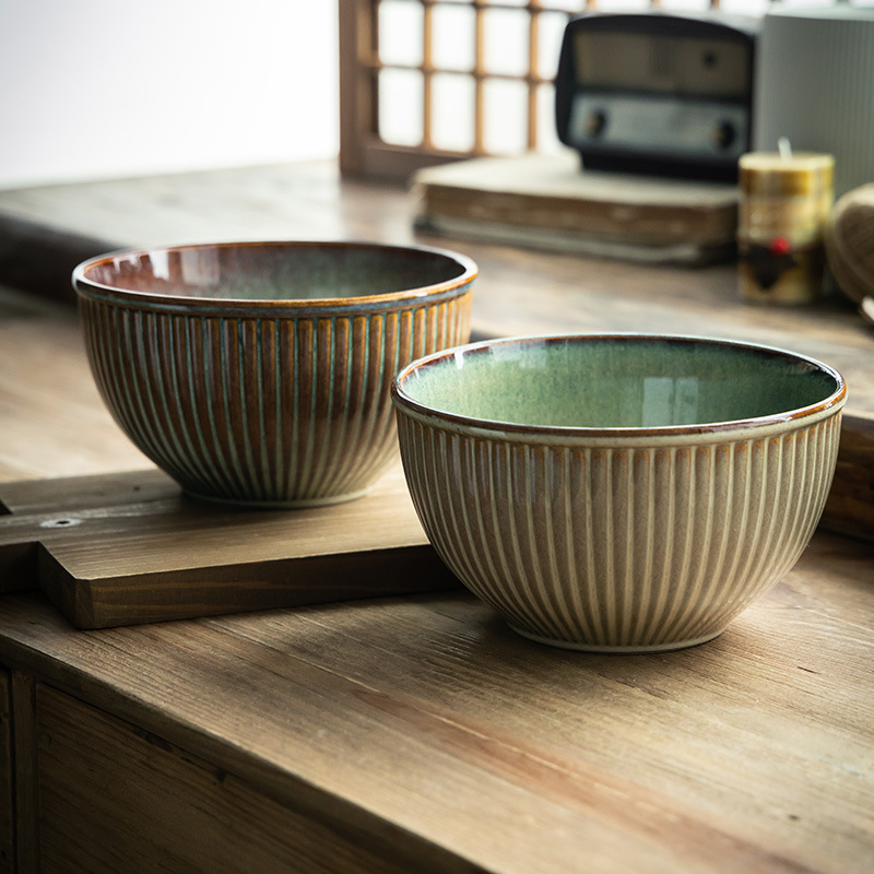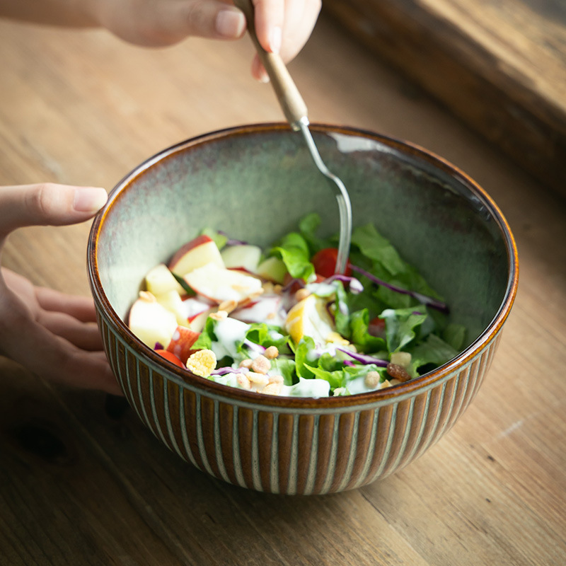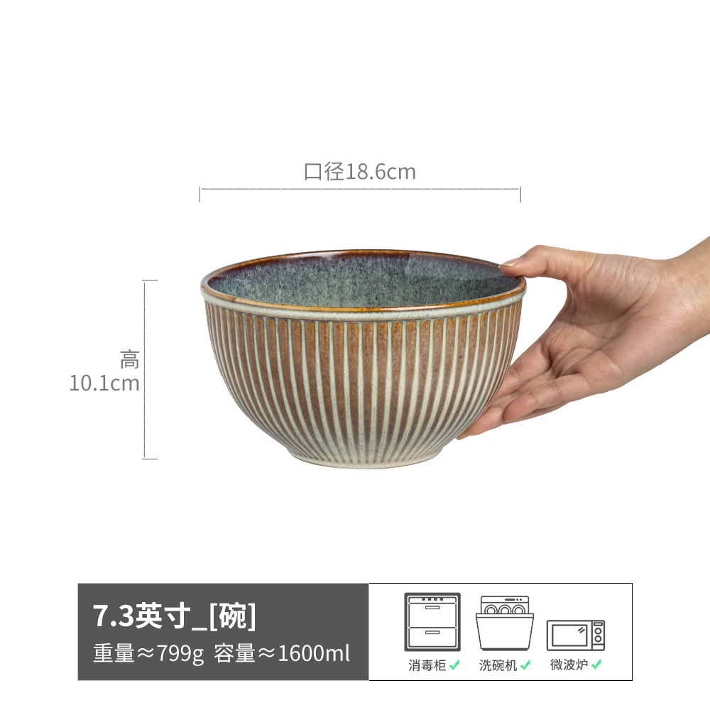 大容量竖纹浮雕陶瓷碗早餐碗面碗水果沙拉碗家用大碗餐具菜碗汤碗