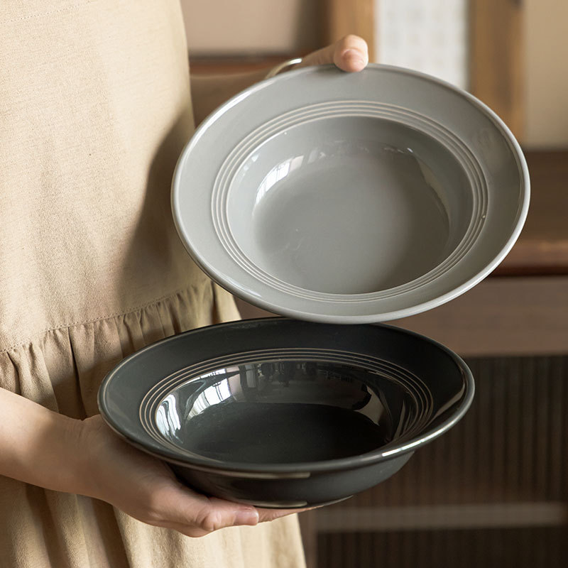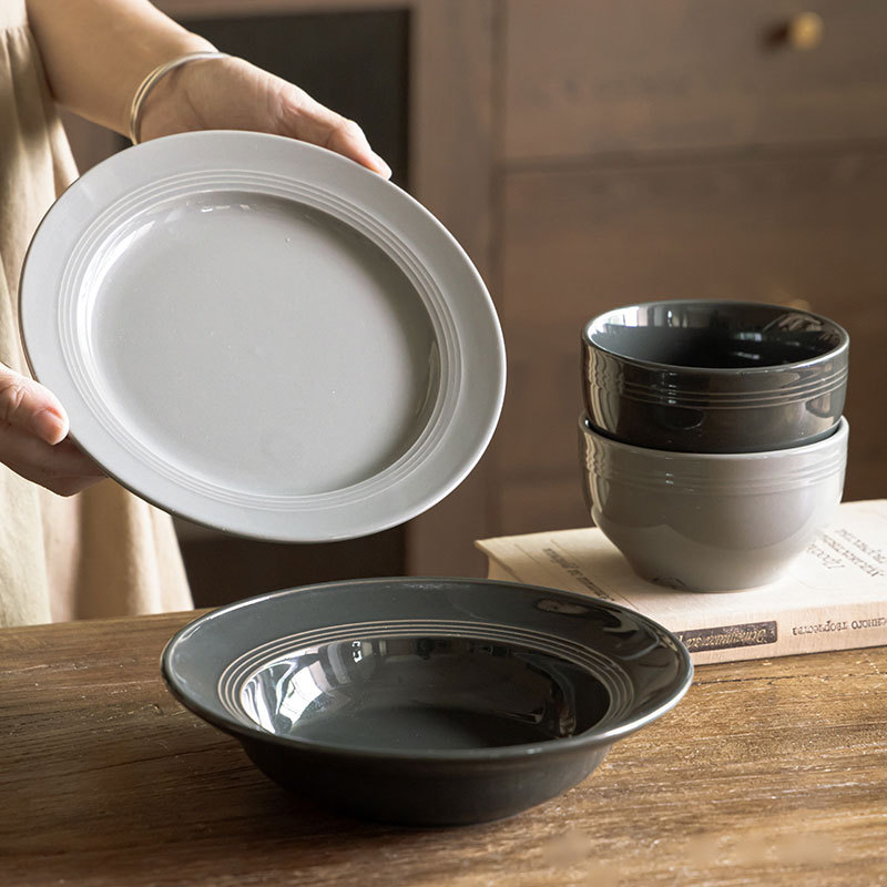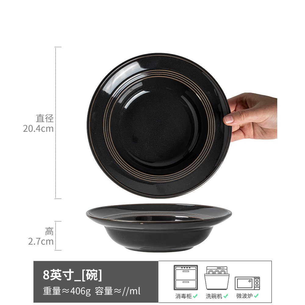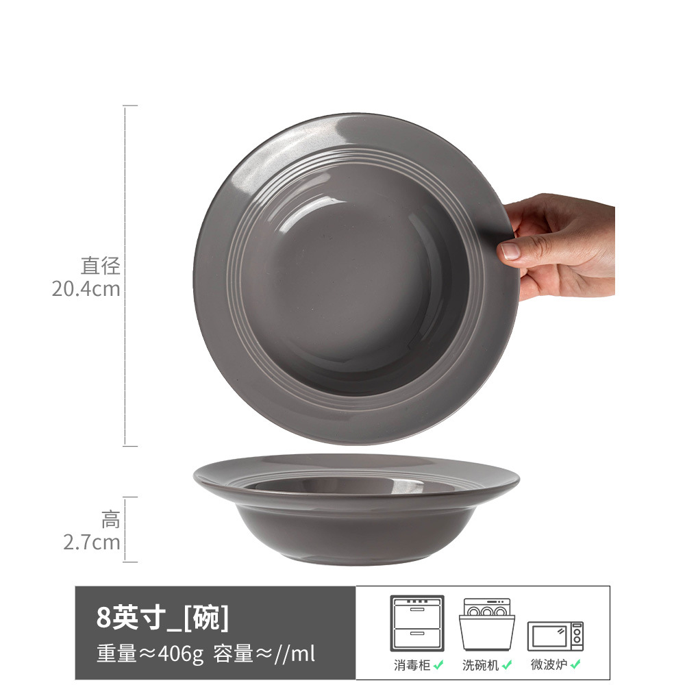 日式餐具套装简约款陶瓷碗盘家用草帽碗圆形大盘餐具意面碗米饭碗
