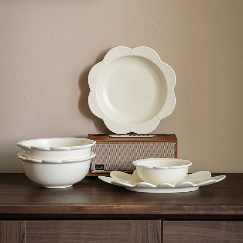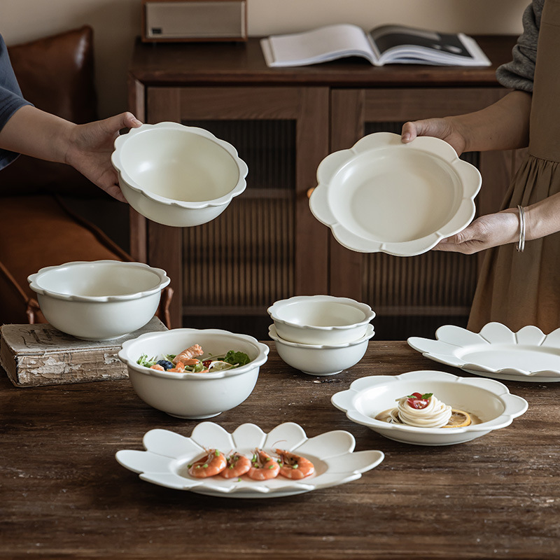 北欧风奶油花边陶瓷碗盘水果碗沙拉盘鱼盘家用米饭碗菜碗汤碗餐具