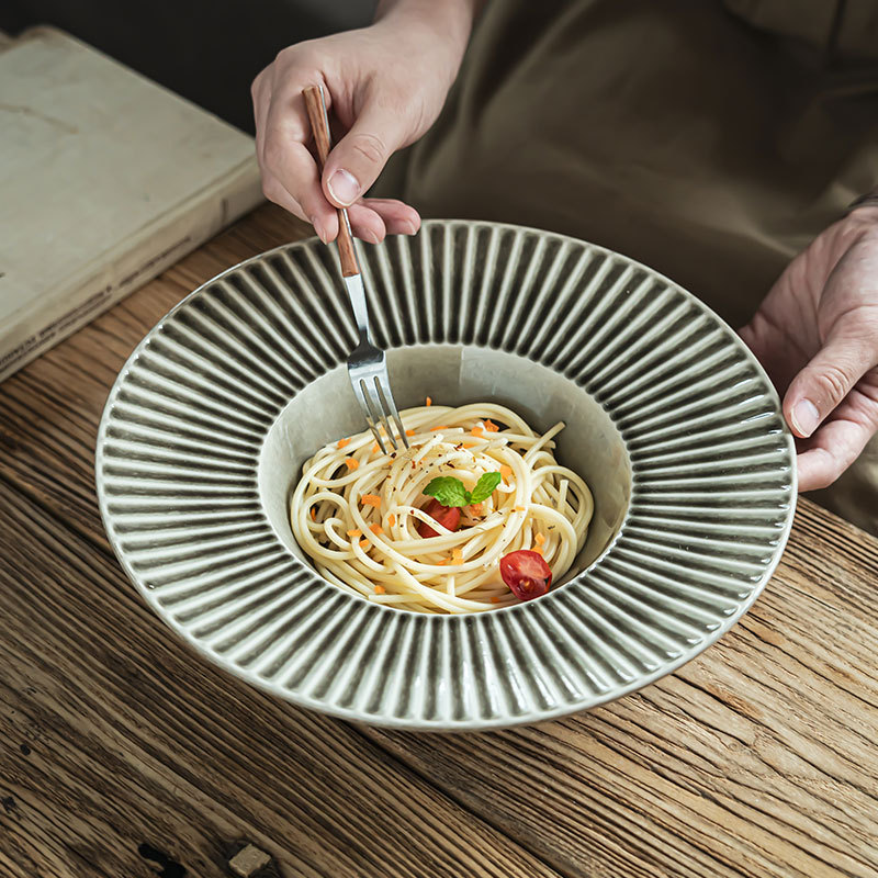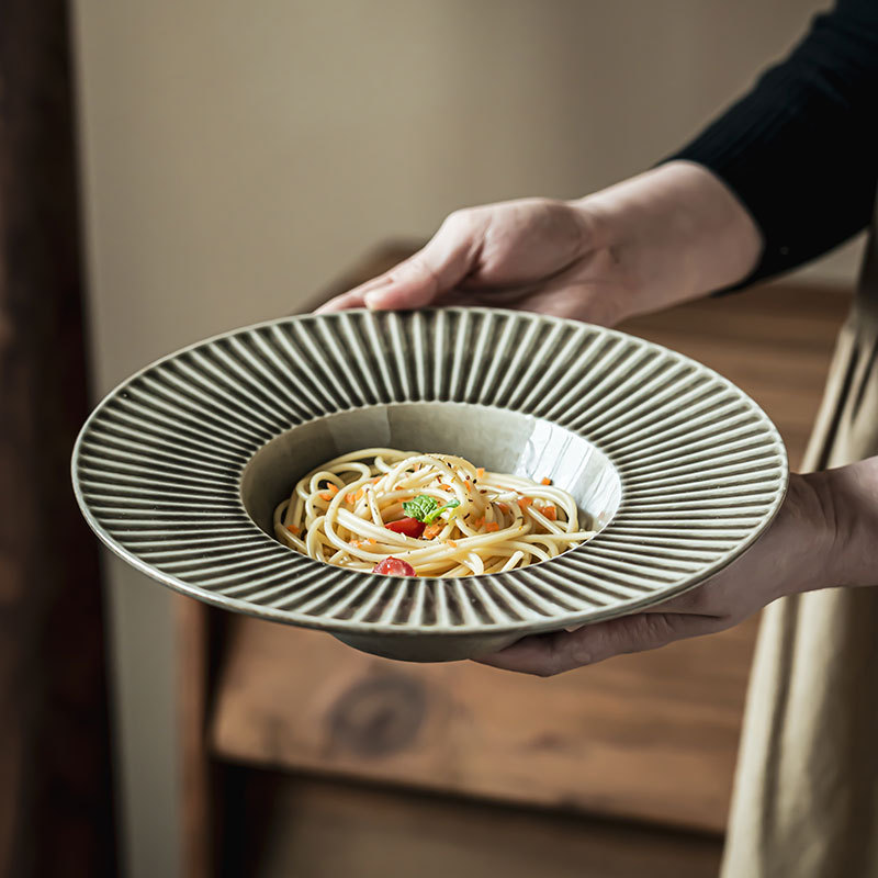 仪式感餐具草帽碗复古风家用陶瓷餐具碗盘菜碗西餐意面碗餐厅摆盘