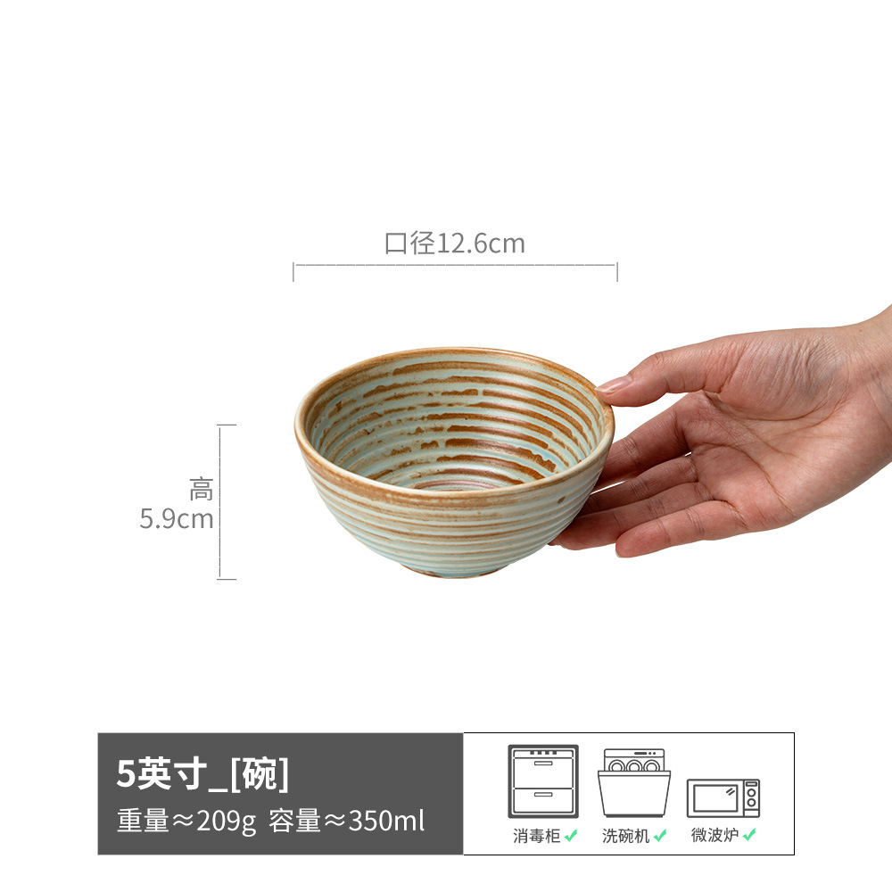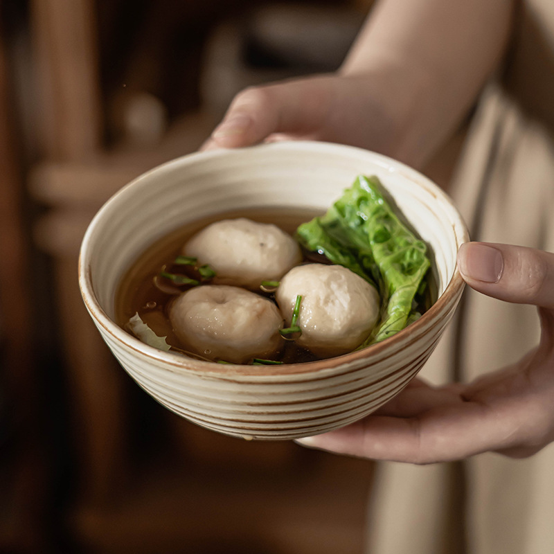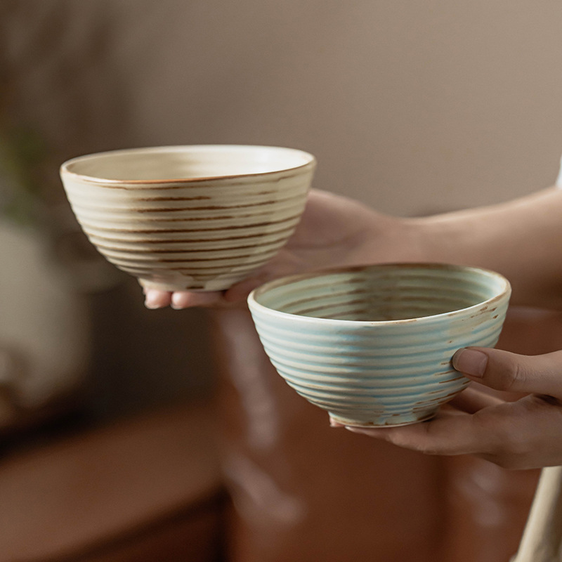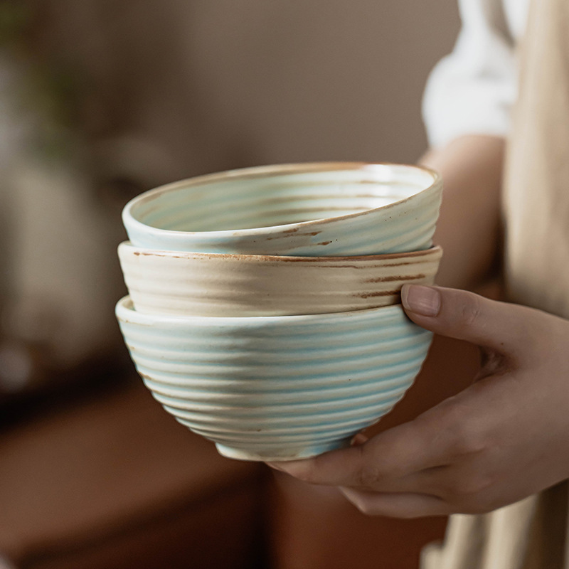 做旧款米饭碗批发粗陶小碗家用饭碗复古环纹餐具甜品碗喝汤碗粥碗