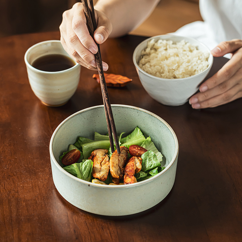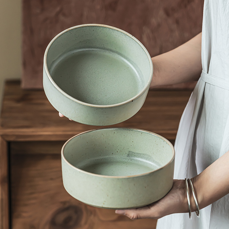 简约复古风淡绿陶瓷直身碗平底圆碗家用餐具菜碗汤盘水果碗沙拉碗
