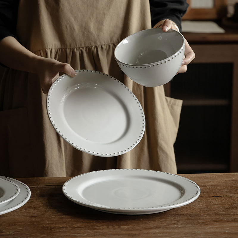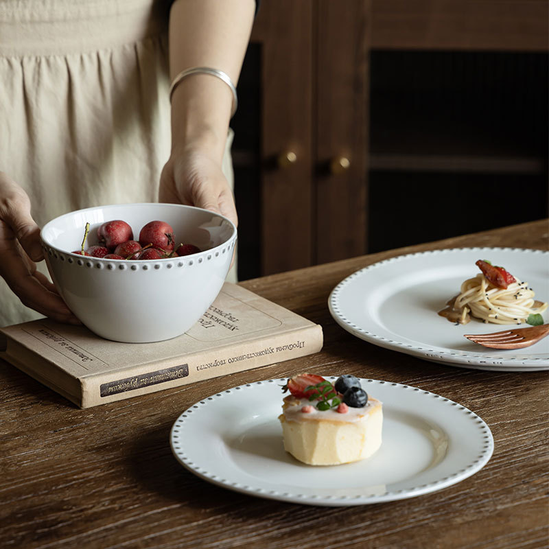高颜值创意珠点碗盘餐具纯色家用米饭碗高级感牛排意面盘点心盘子