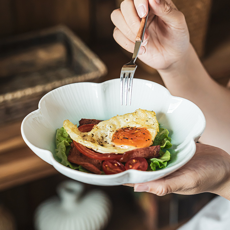 龙青陶瓷家用餐盘水果果盘中式花朵盘点心盘早餐盘民宿西餐盘