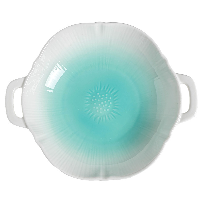 青盐-双耳盘渐变白绿8英寸