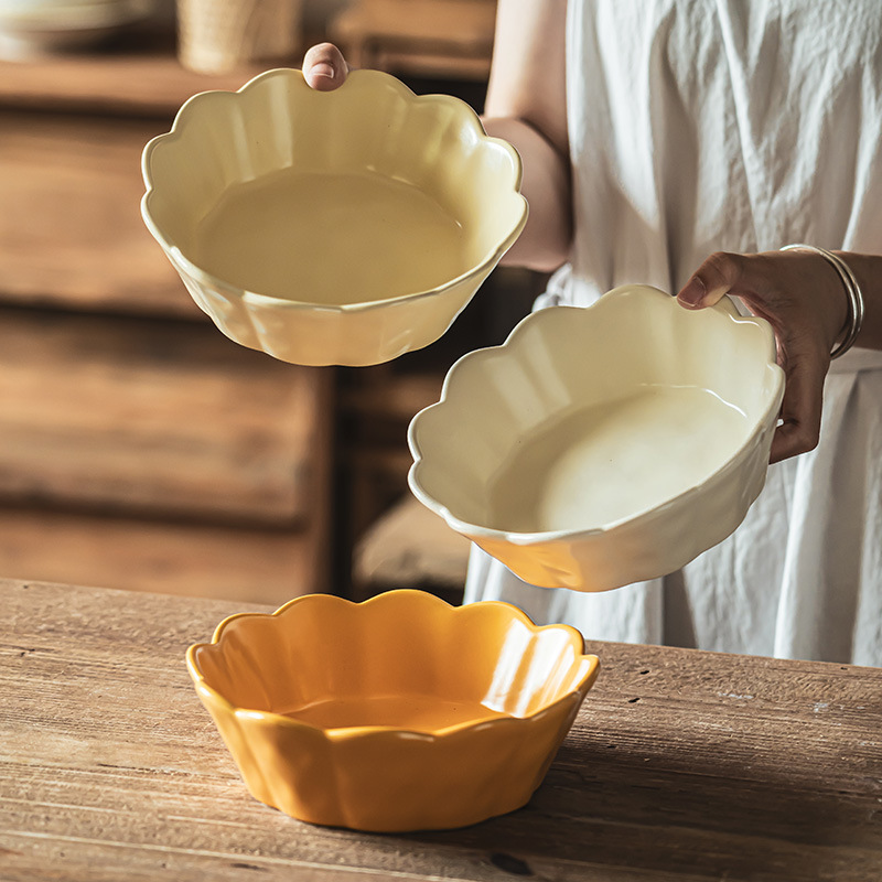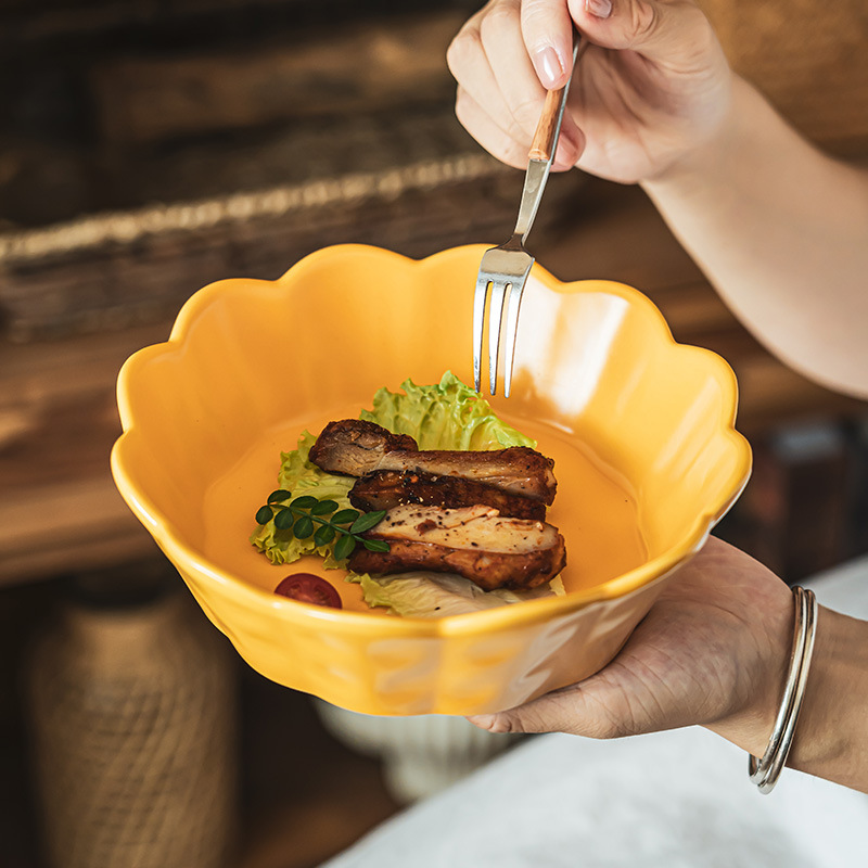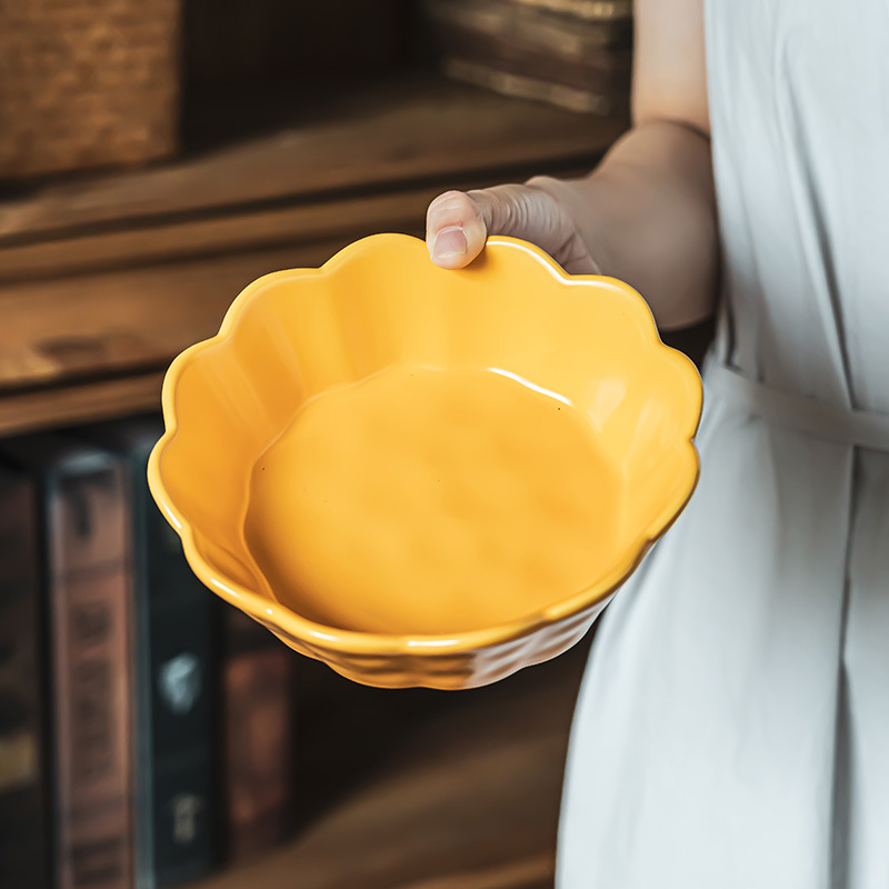 陶瓷花边碗沙拉碗甜品碗家用菜碗深盘早餐碗焗饭碗拌面碗摆盘