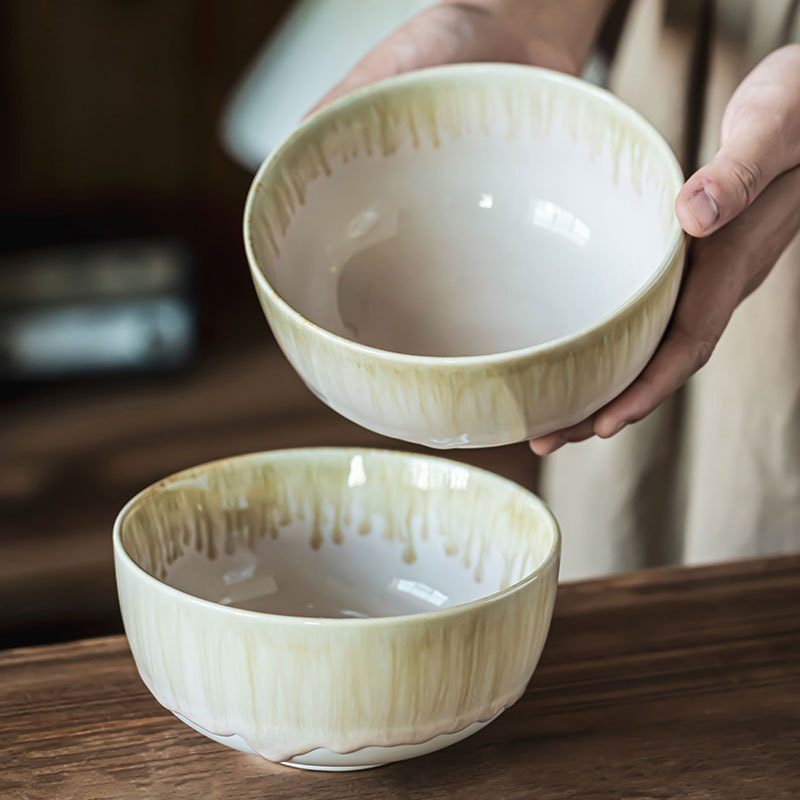 复古流釉陶瓷米饭碗家用日式小碗水果碗餐具碗批发圆形饭碗甜品碗