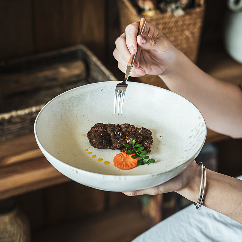 诧寂风日式陶瓷浅碗圆形大碗家用餐具碗菜碗牛排意面碗甜品碗沙拉