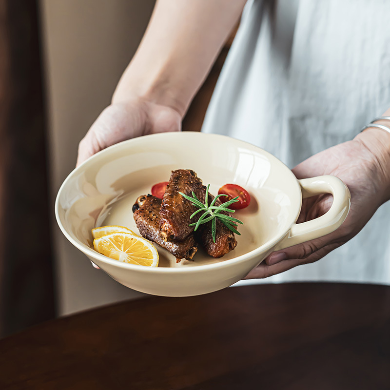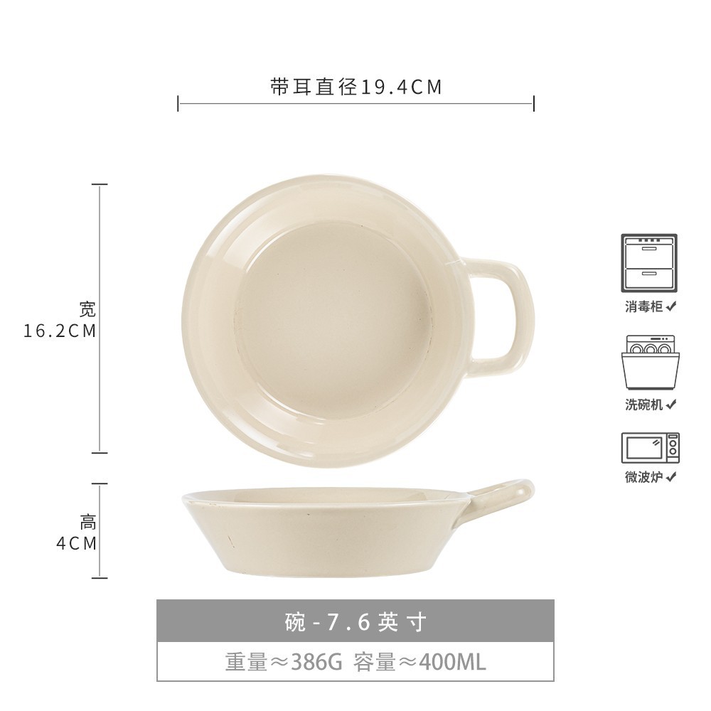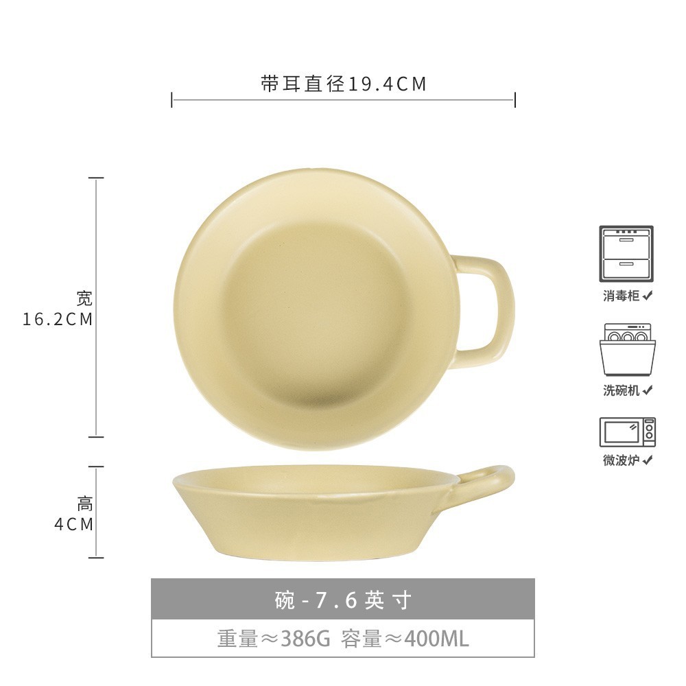 高颜值单耳碗纯色陶瓷早餐碗家用碗菜碗沙拉碗甜品碗特色餐具