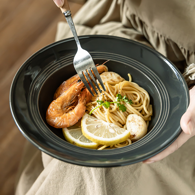 北欧纯色陶瓷草帽碗西餐意面碗餐具碗盘子批发家用圆形盘菜碗汤碗