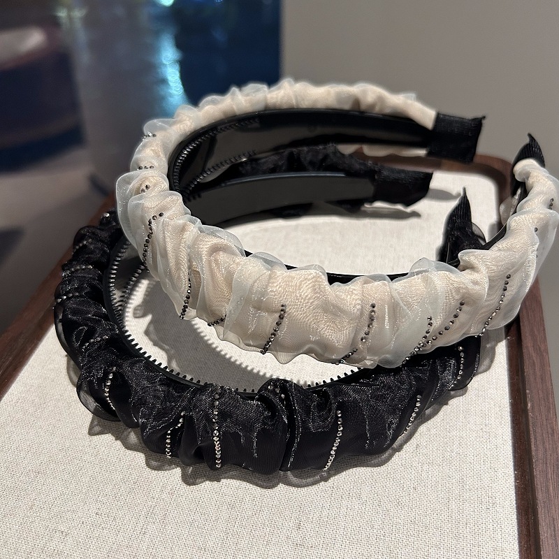 韩版简约褶皱高颅顶发箍气质缎面压发宽边防滑百搭洗脸头箍发饰女
