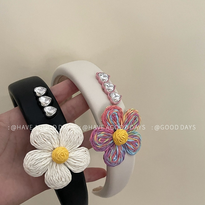 甜美编花朵发箍爱心可爱小众设计感高级轻奢风气质宽版头箍发饰