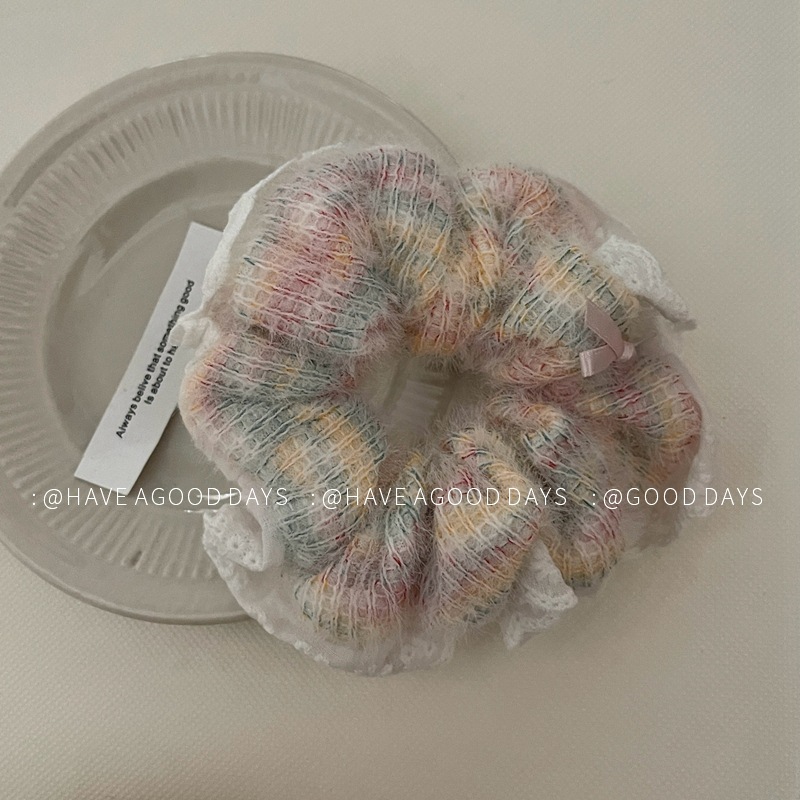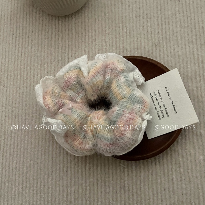 秋冬新款彩色毛线发圈蝴蝶结头绳气质小清新甜美发饰头饰百搭个性