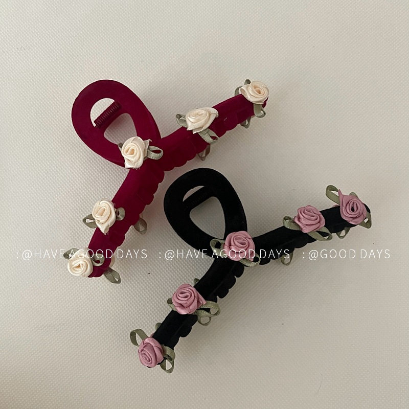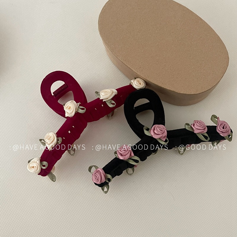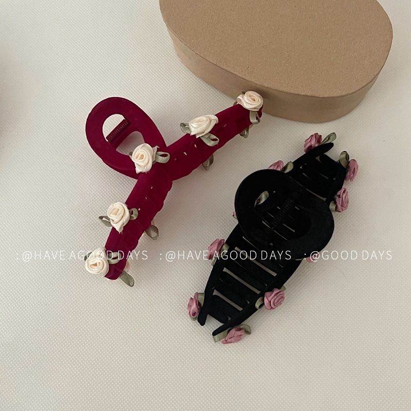 甜美温柔玫瑰抓夹发夹气质高级感鲨鱼夹简约百搭头饰发饰个性小众