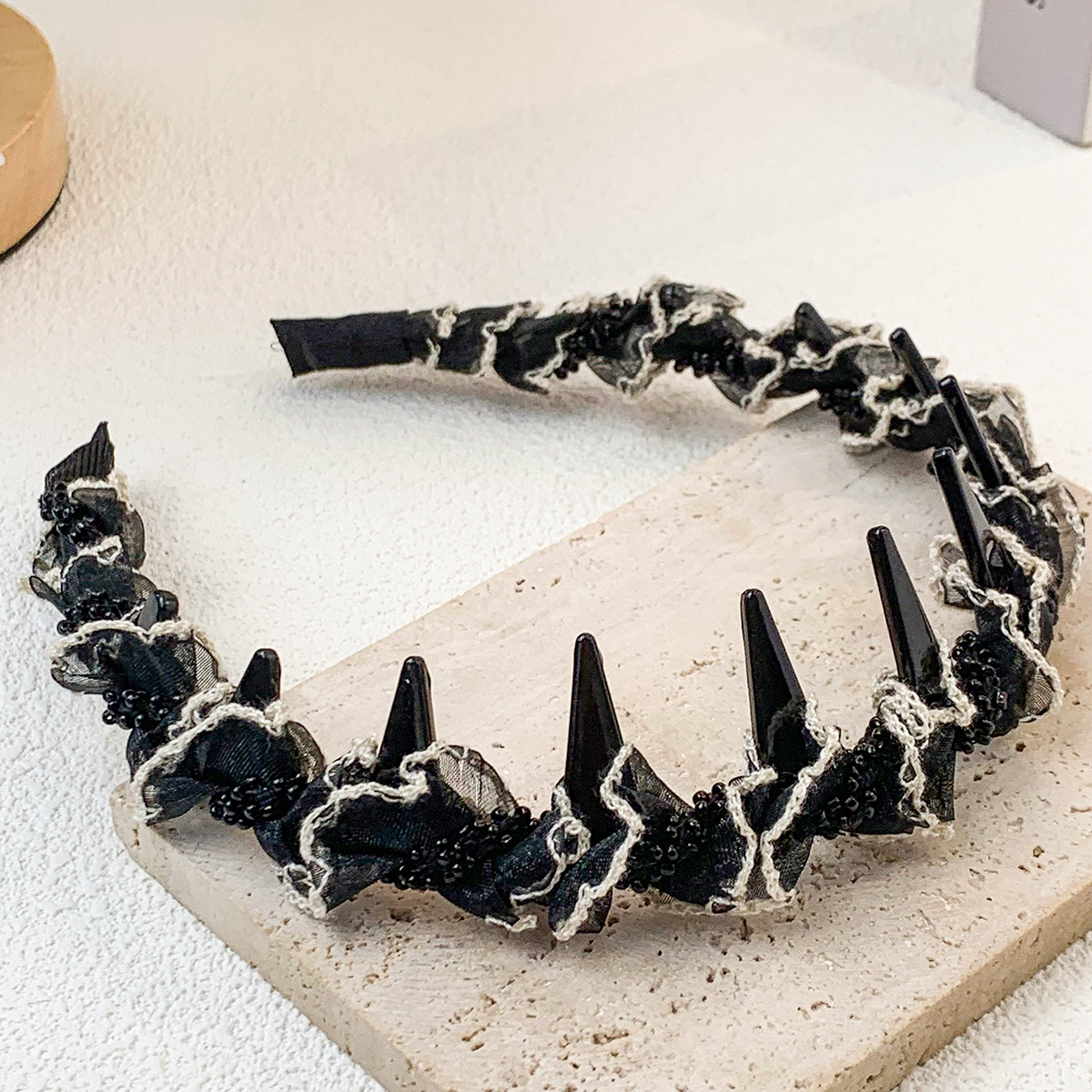 满天星韩版轻奢荷叶边黑丝绒发箍带齿洗脸发卡优雅时尚高颅顶神器