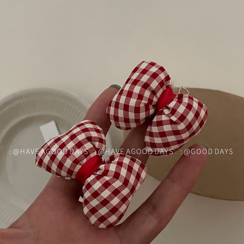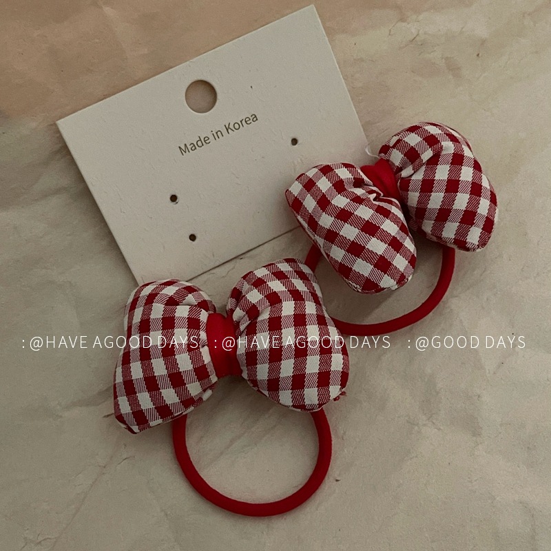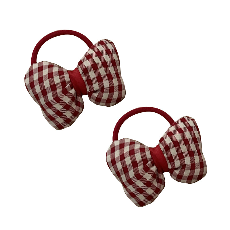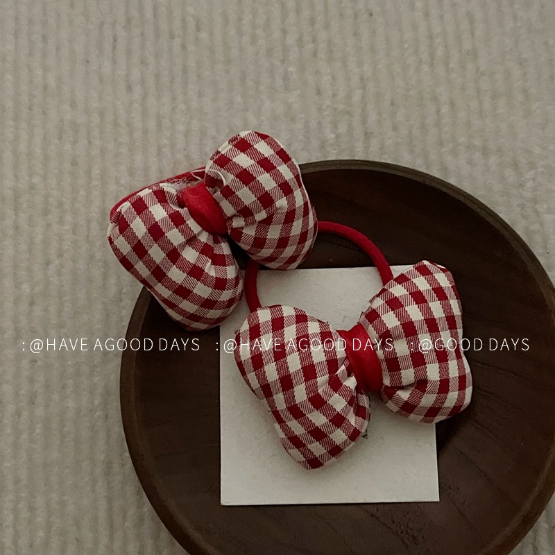 可爱大红色格子蝴蝶结发圈儿童发绳小众设计感气质韩版个性头饰女