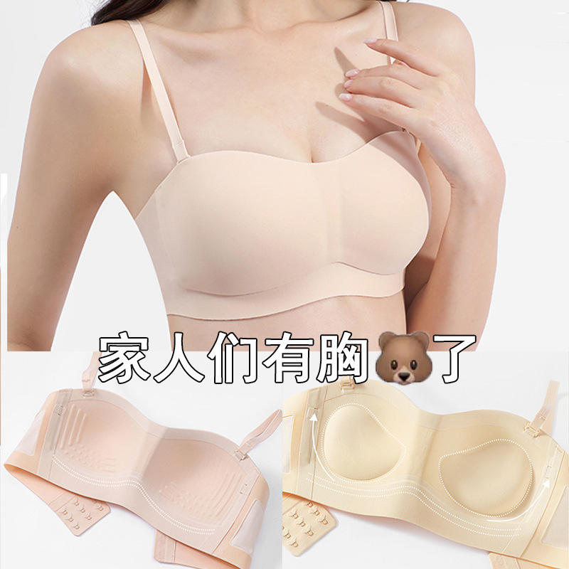 亿涵梦内衣*防滑抹胸无痕无肩带内衣女聚拢外扩加厚内杯无钢圈