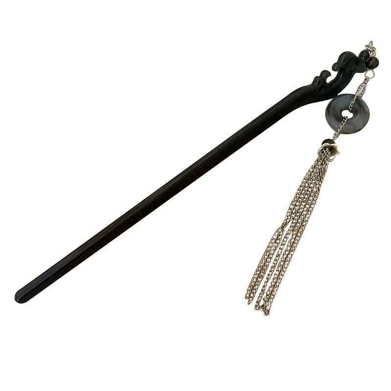 复古水墨蝴蝶书法平安扣流苏发簪清雅古风清冷感发钗女新中式发饰