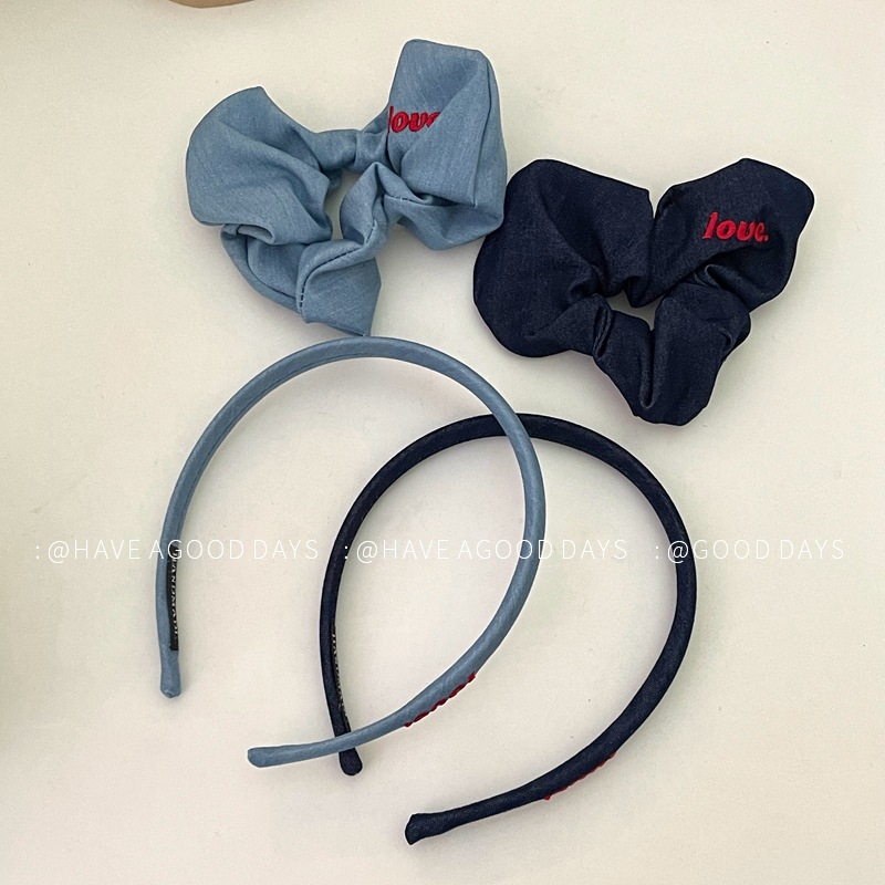 甜美高级感轻奢风气质头箍发饰小众设计简约英文复古牛仔发箍发圈