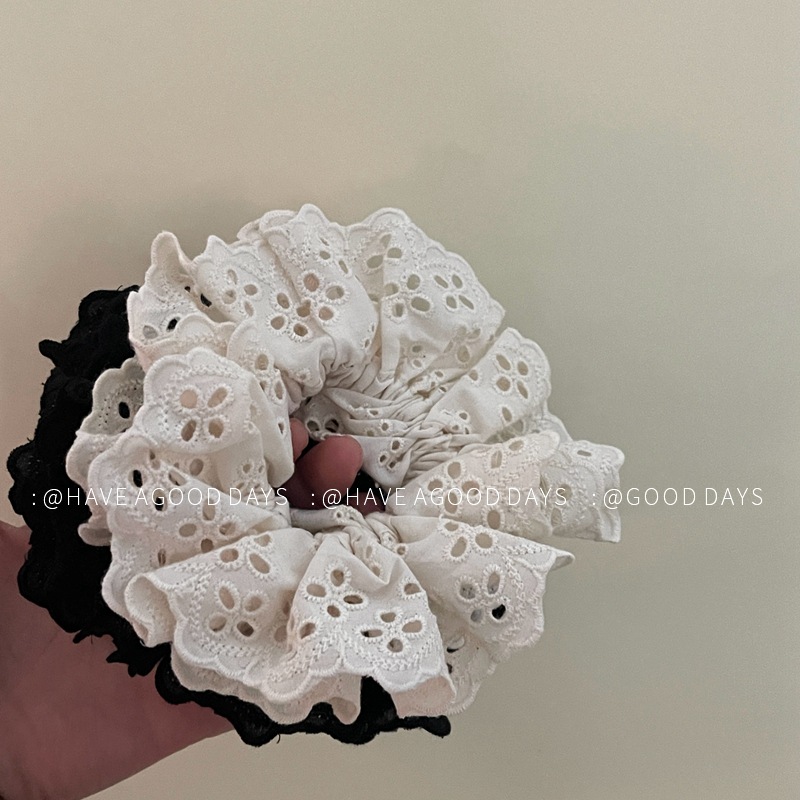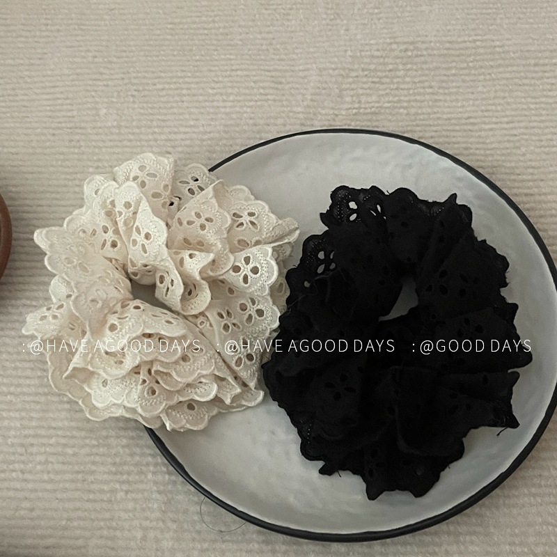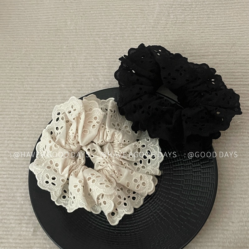 甜美镂空花朵发圈褶皱布料头饰小众设计感夏日新款韩版发饰可爱女