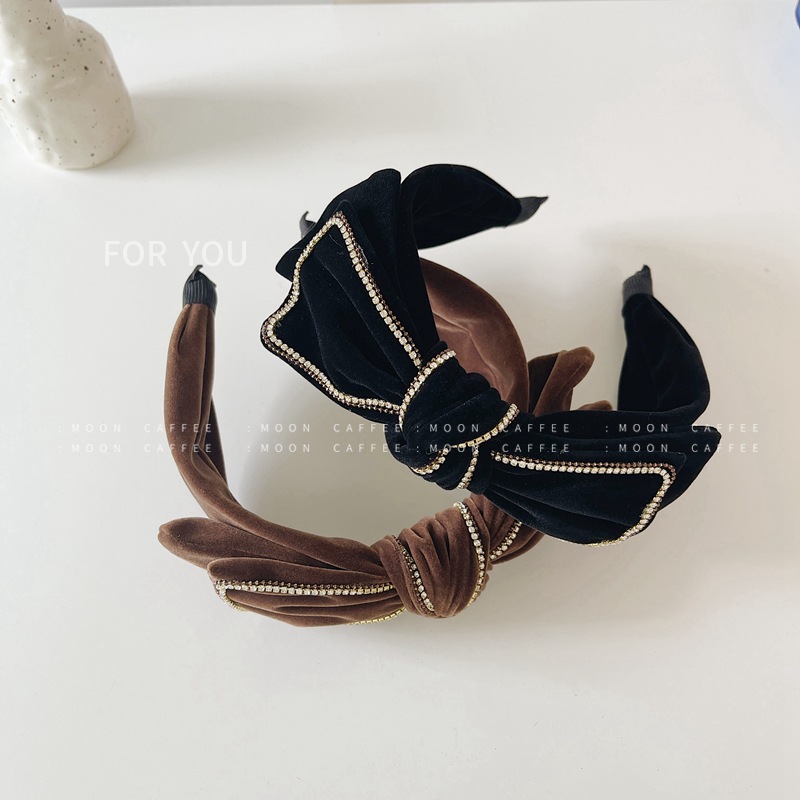 法式天鹅绒包钻发箍高颅顶氛围感仙女款头箍发卡韩国ins气质头饰