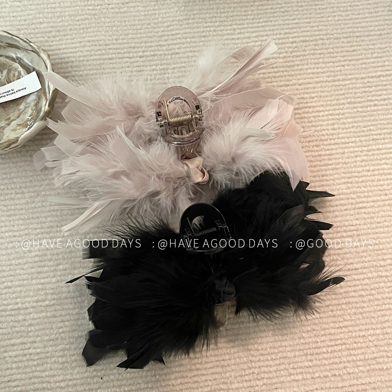 超仙蝴蝶结羽毛抓夹个性小众设计感气质高级感轻奢风甜美头饰发饰