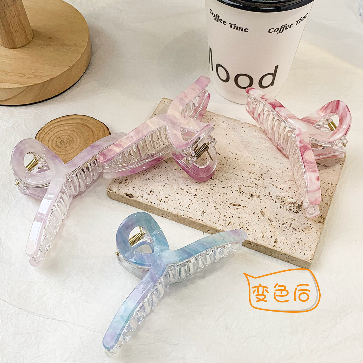 日韩小众清新甜美醋酸变色果冻珠光抓夹简约百搭高级鲨鱼夹发夹女