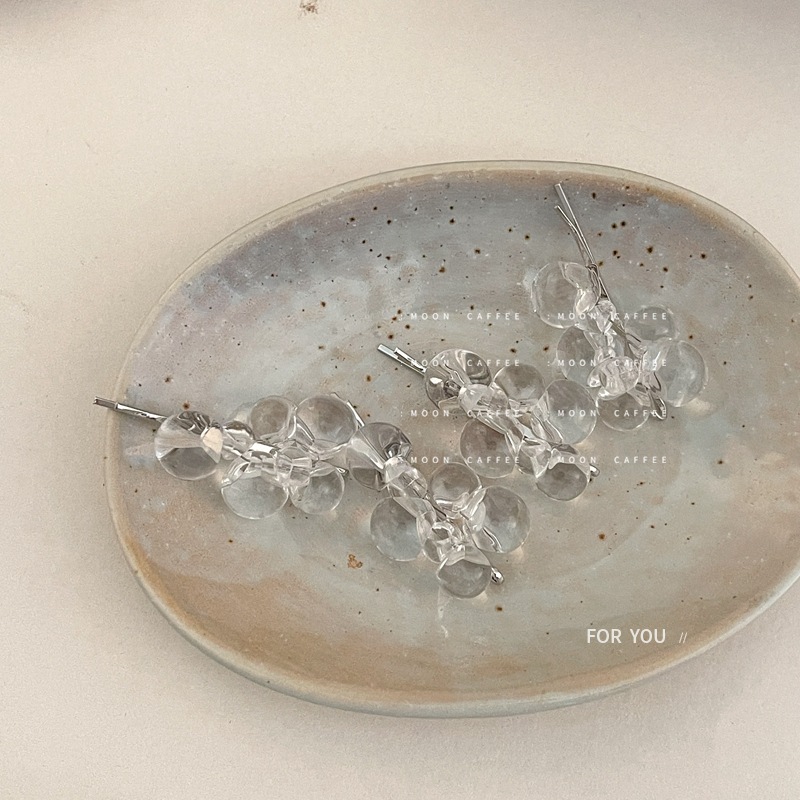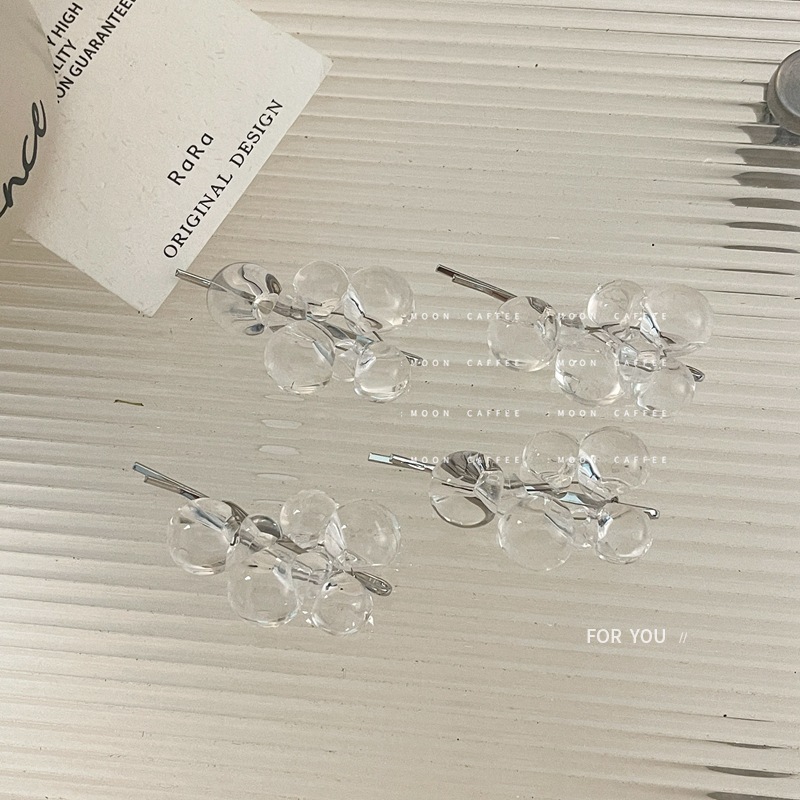 人鱼泡沫透明葡萄串仿真水果小众一字夹发夹边夹后脑勺碎发夹发卡