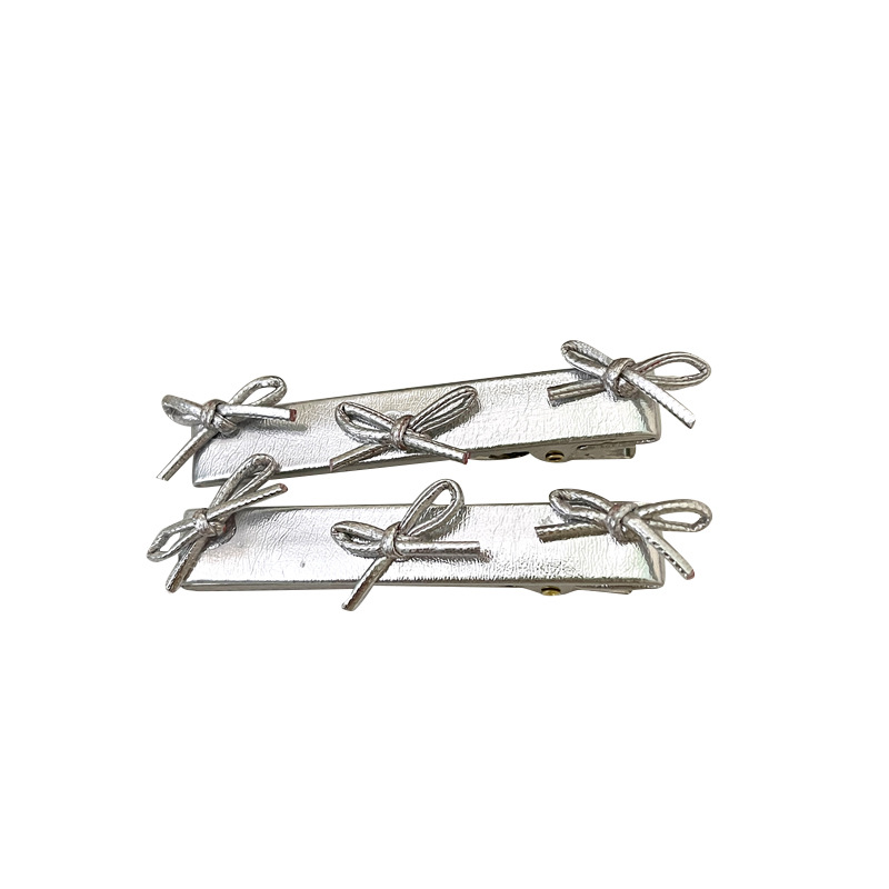 韩国东大门银色蝴蝶结手作鸭发夹甜酷辣妹风侧边夹刘海夹发饰
