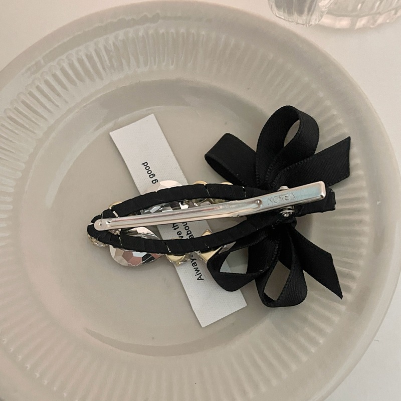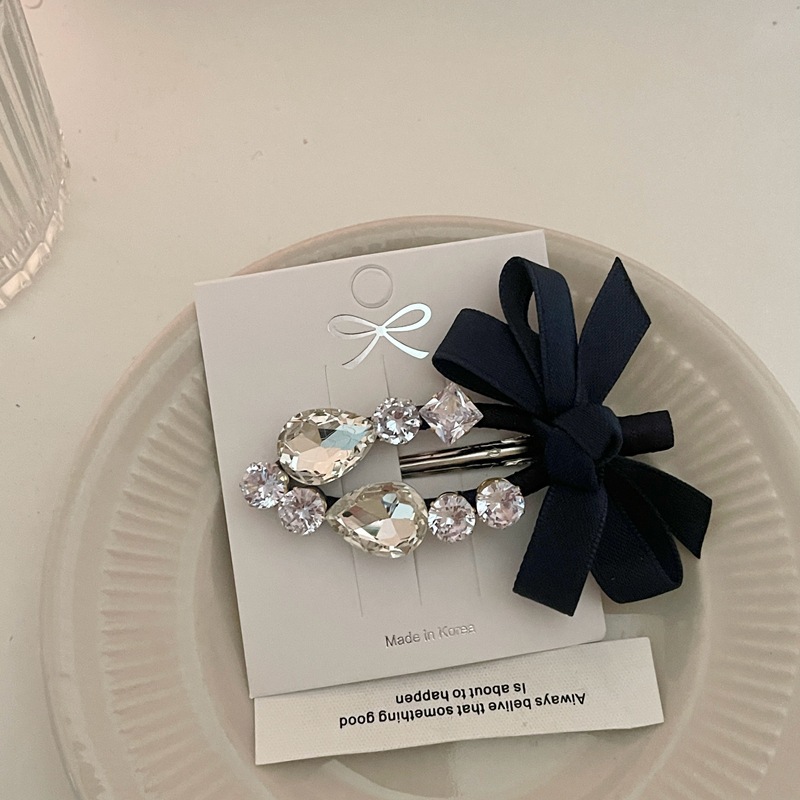 新款韩国甜美丝带蝴蝶结水钻鸭发夹超仙刘海夹侧边夹发饰BB夹