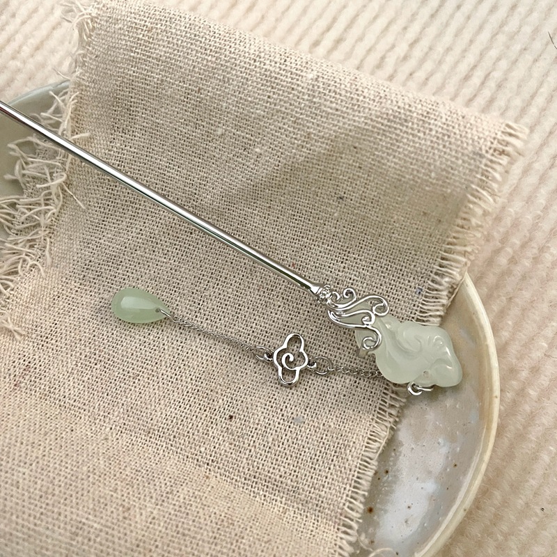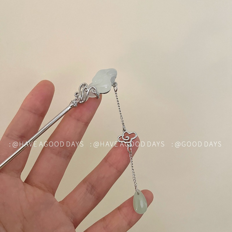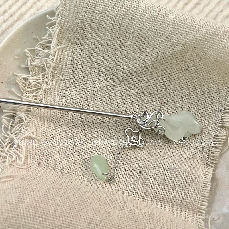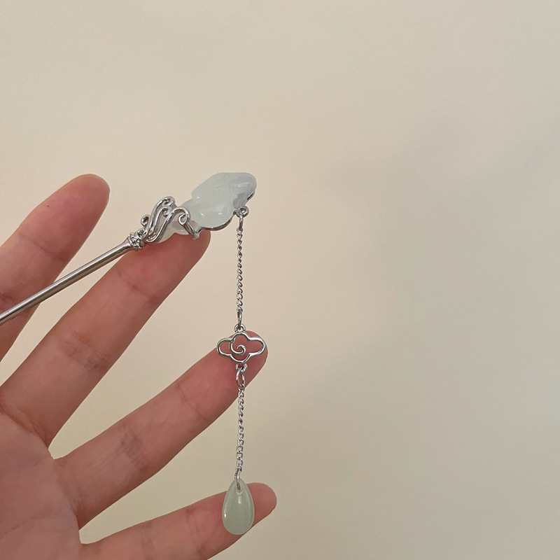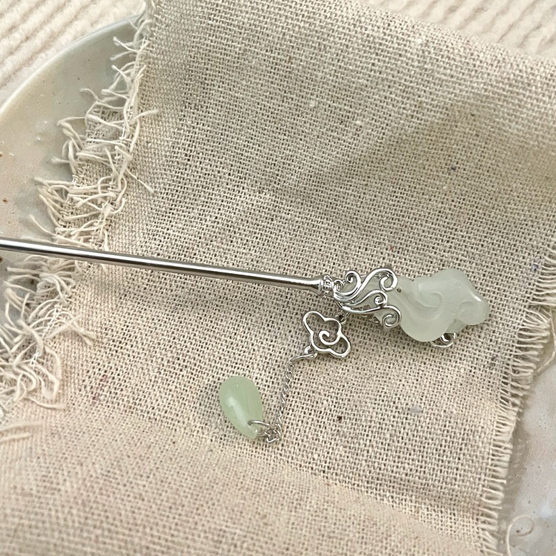祥云玉如意发簪女新中式马面裙配饰步摇高级感后脑勺盘发发钗头饰