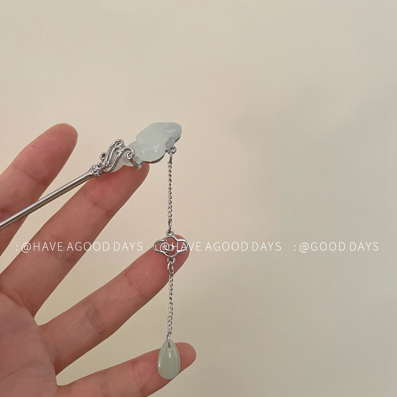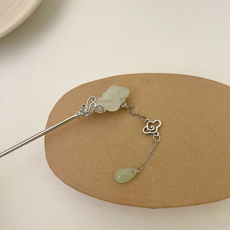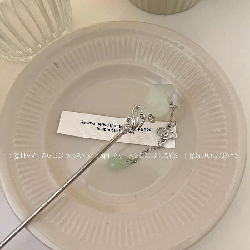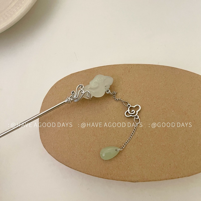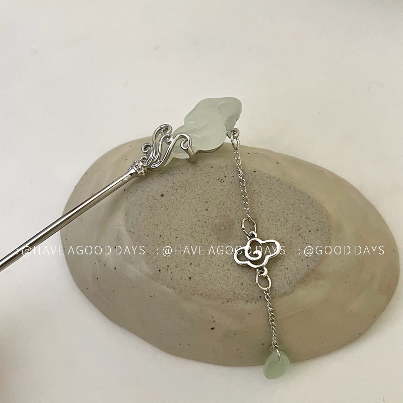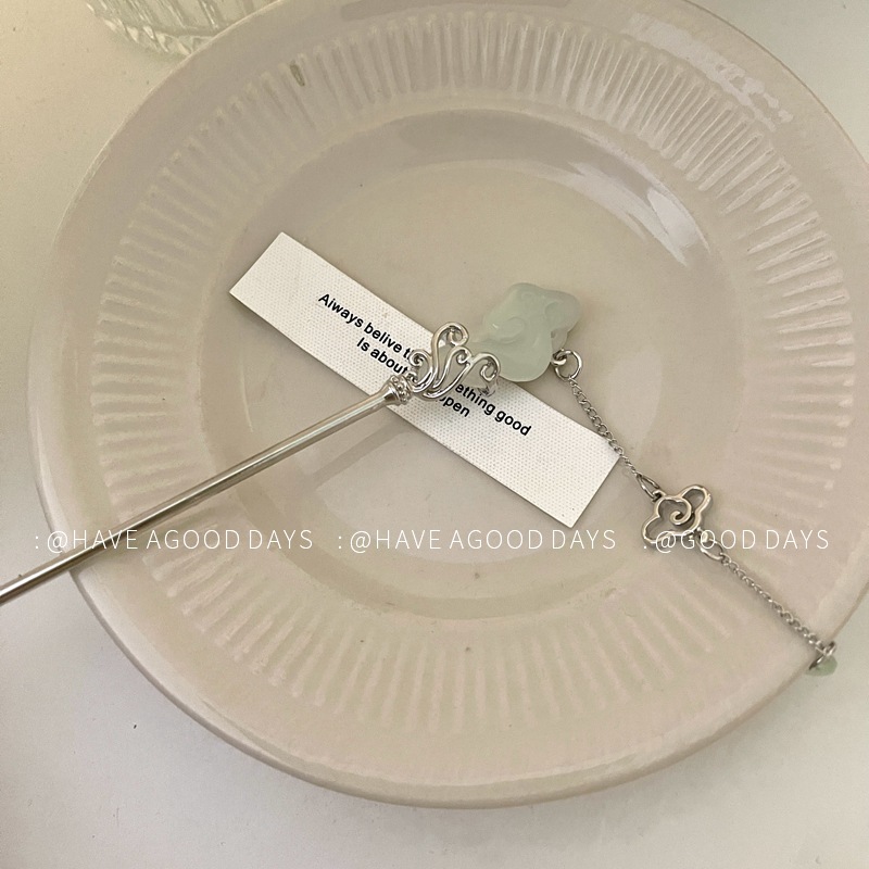 祥云玉如意发簪女新中式马面裙配饰步摇高级感后脑勺盘发发钗头饰