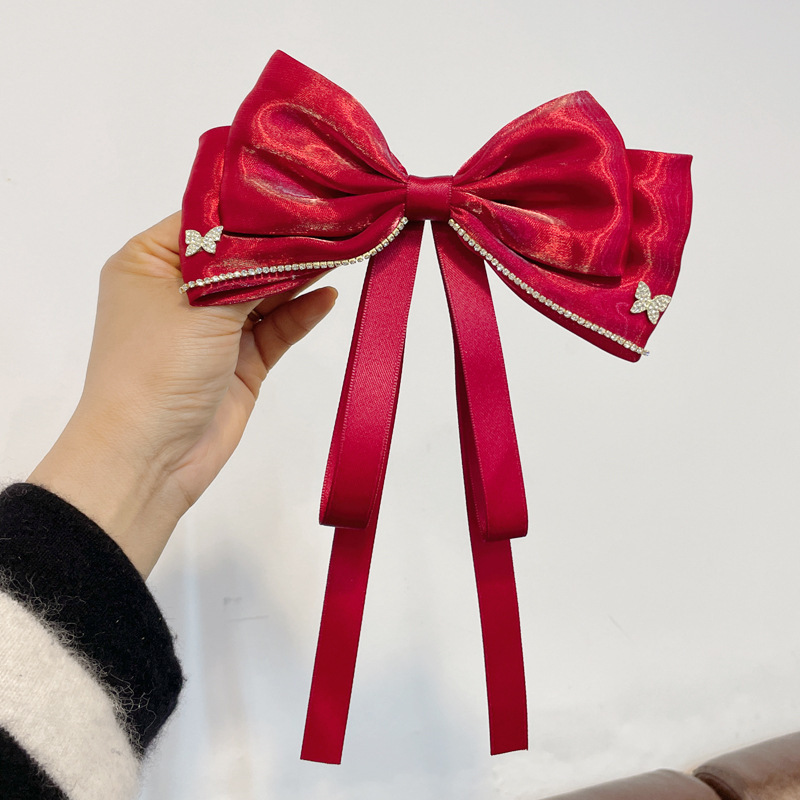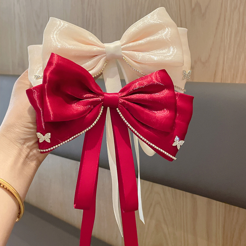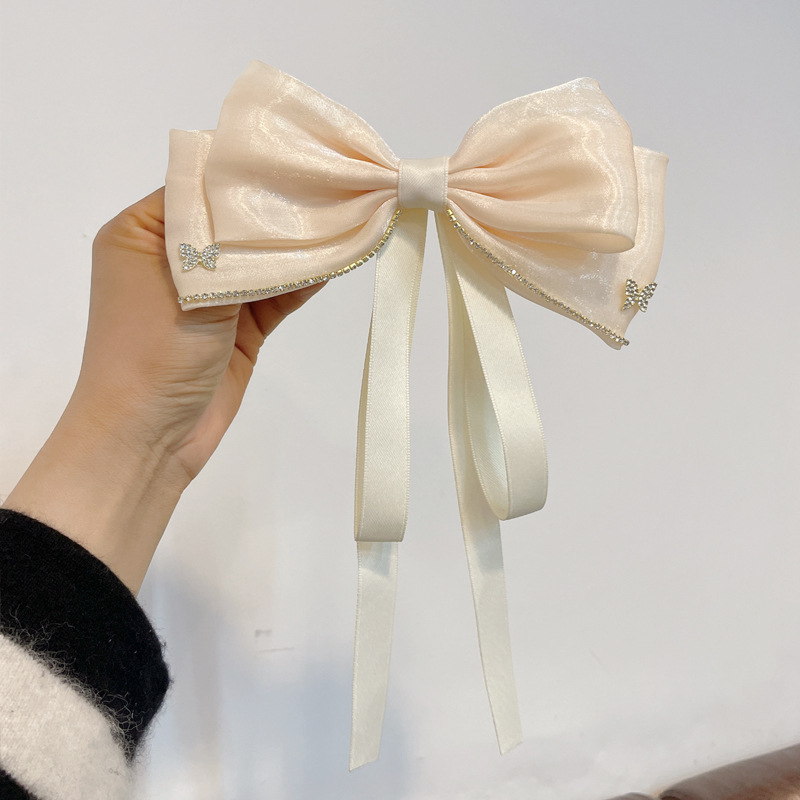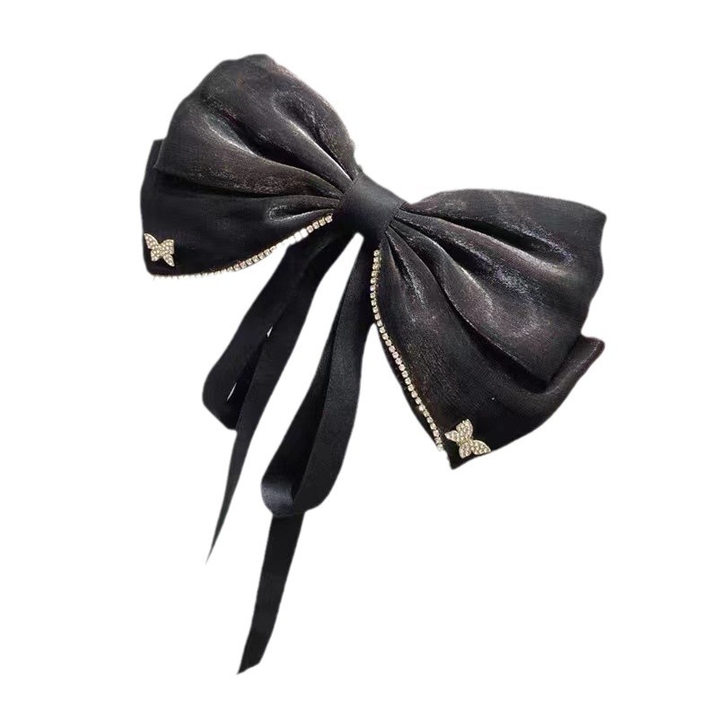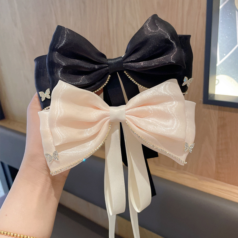 网红新款亮纱蝴蝶结发夹女生后脑勺弹簧夹子头饰气质发卡公主顶夹