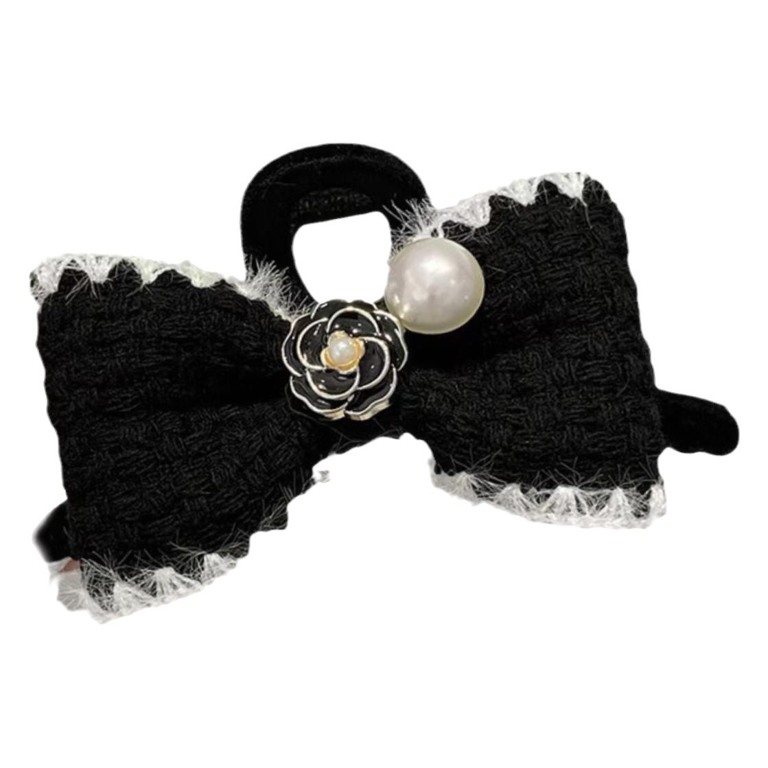 秋冬新款抓夹气质轻奢小香风蝴蝶结发夹毛绒高级发饰山茶花鲨鱼夹