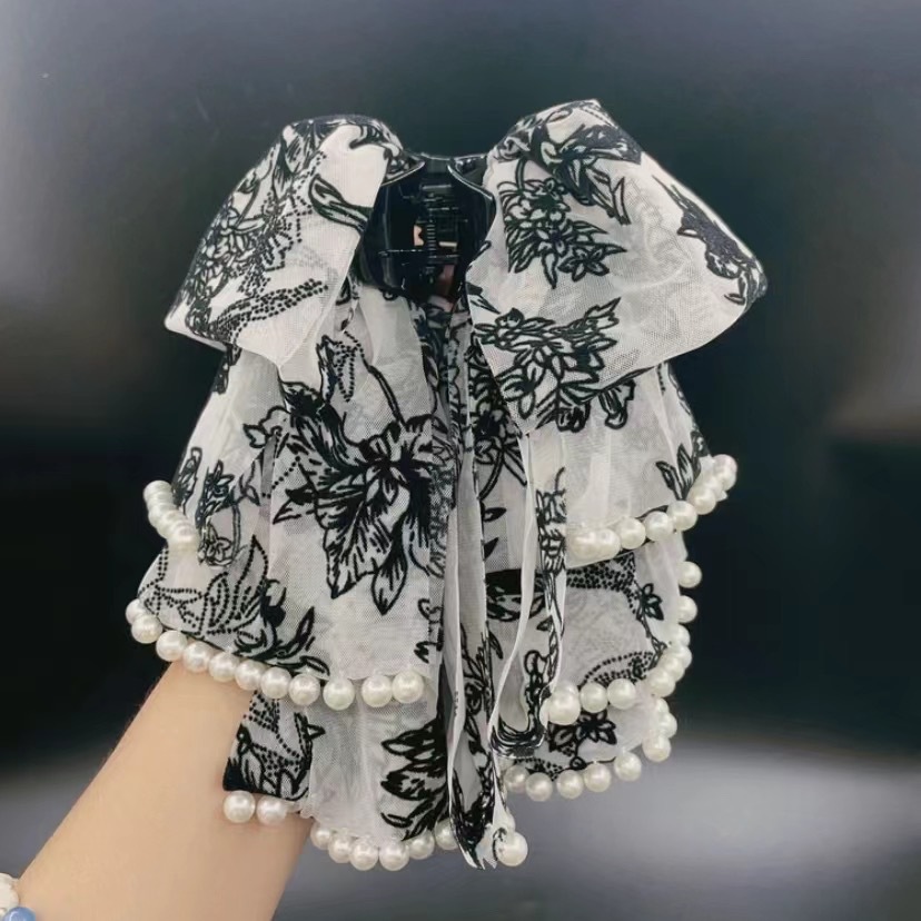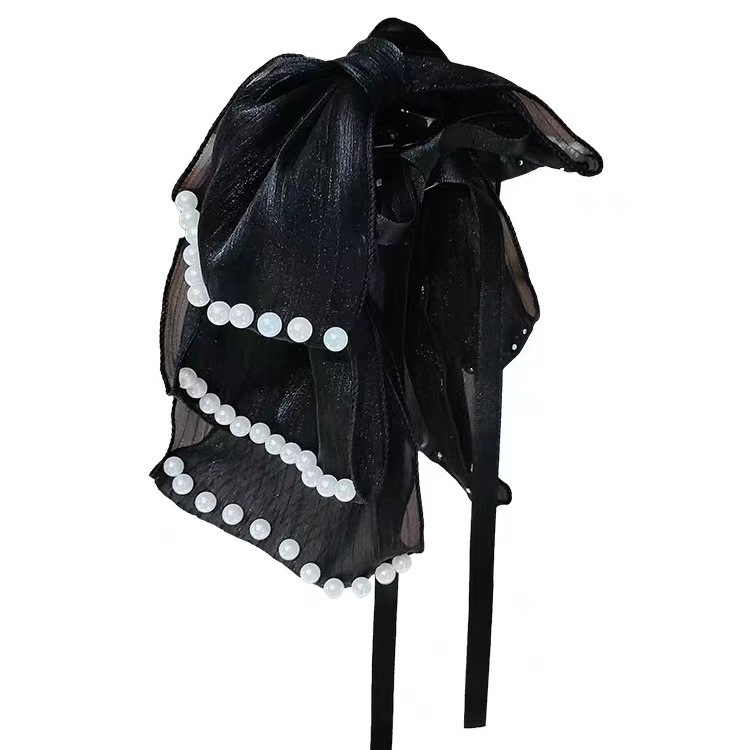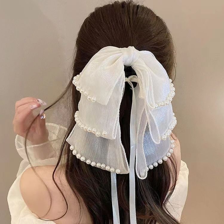 超仙珍珠飘带蝴蝶结抓夹女后脑勺森系半扎发夹头饰气质马尾夹子
