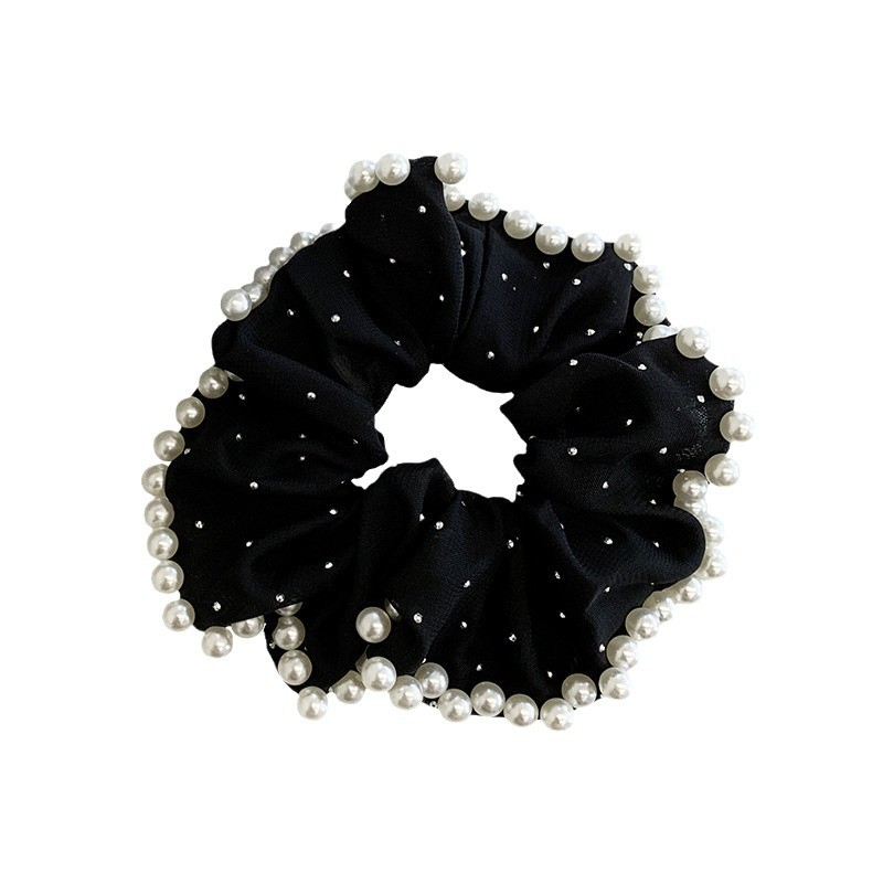 大号刺绣珍珠网纱大肠发圈马尾发绳复古简约法式高端赫本风发饰女