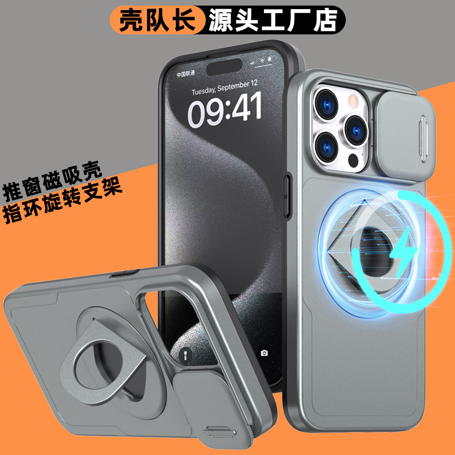 超凡隐甲二代适用iPhone15ProMax手机壳指环旋转支架镜头推窗磁吸