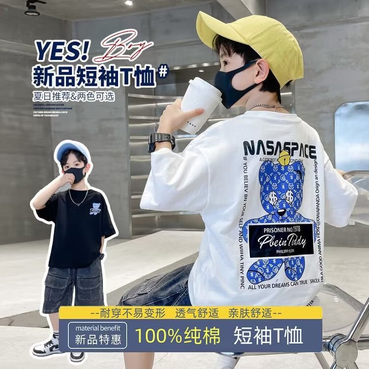 童装纯棉短袖新款中大童休闲卡通t恤夏季男童上衣潮t炸街跨境