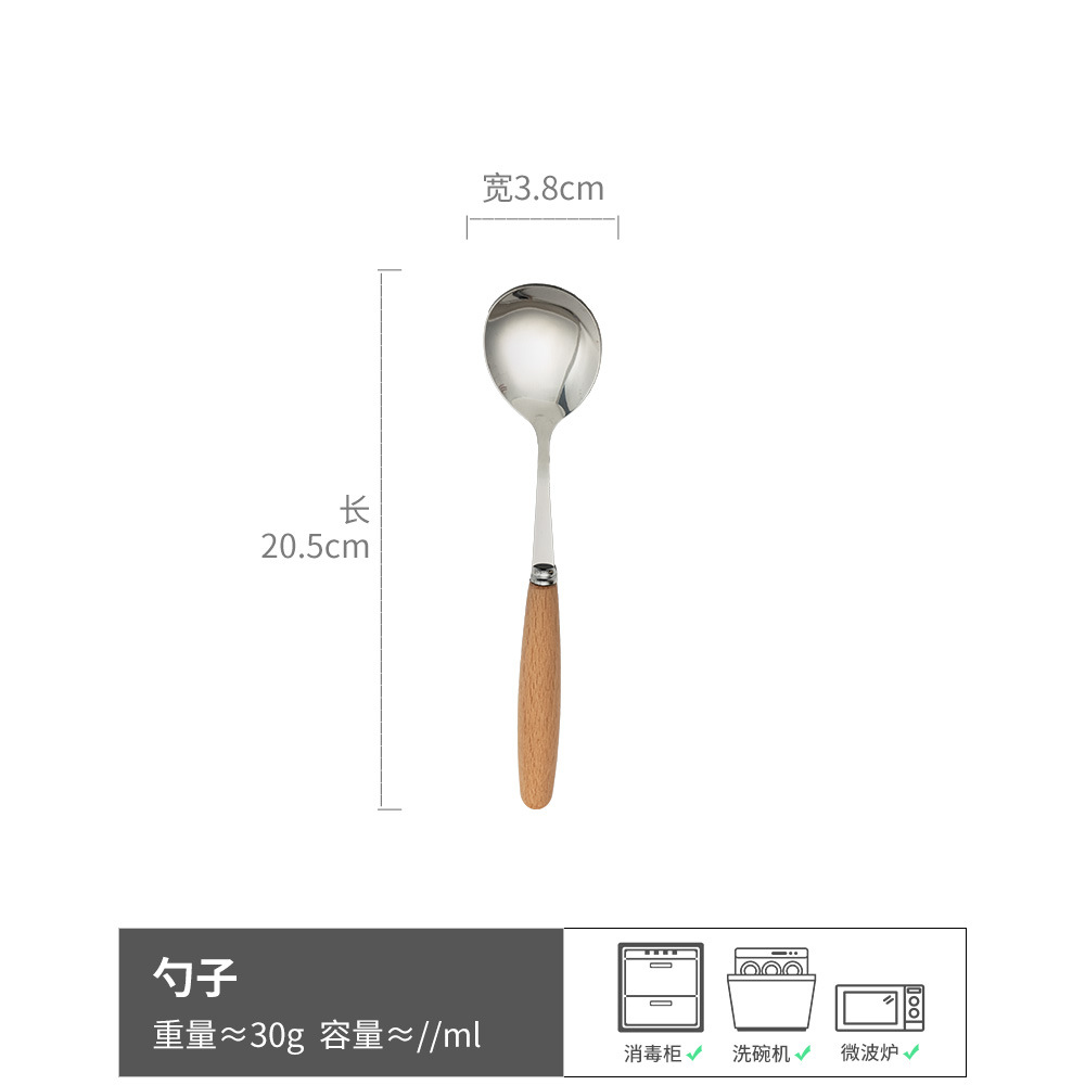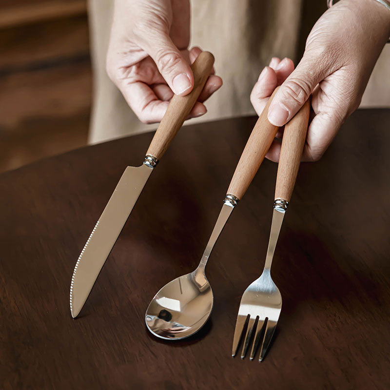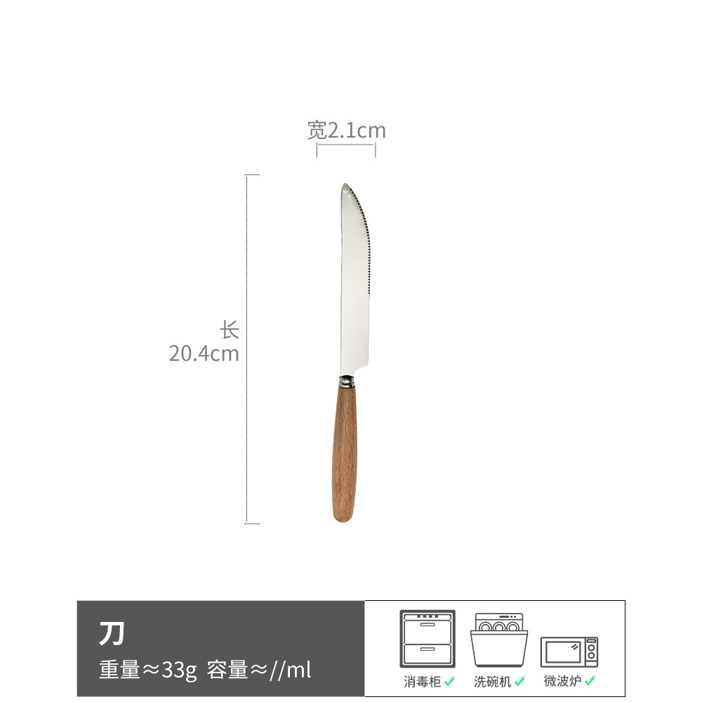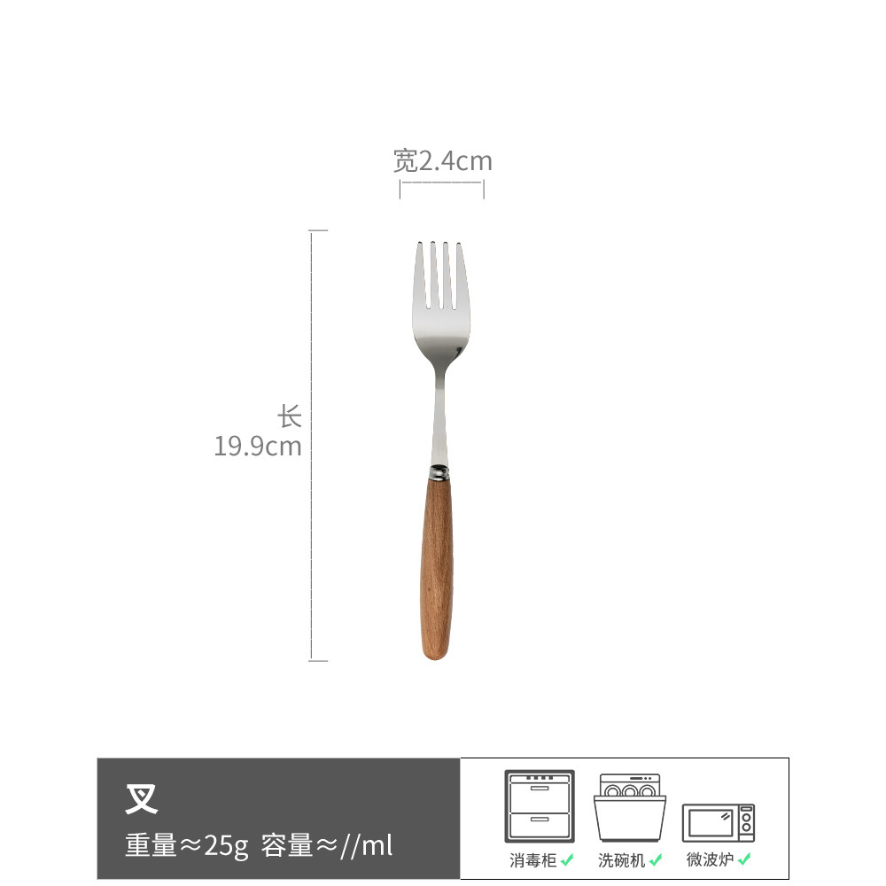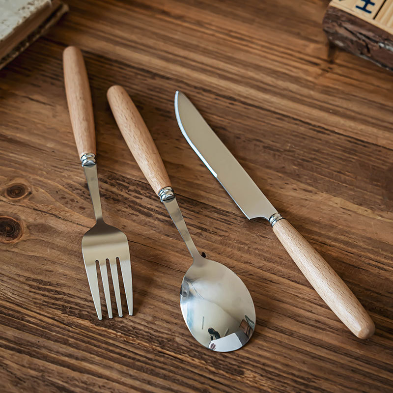复古感木柄勺子不锈钢刀叉勺家用高档精致吃饭长柄叉子喝汤勺
