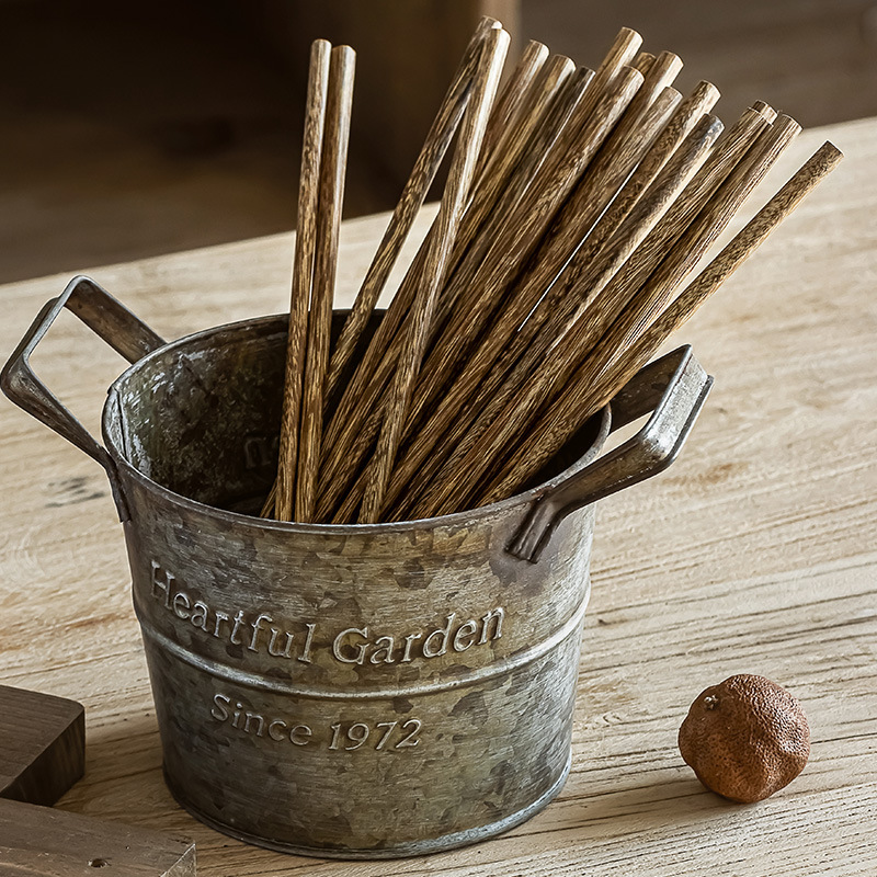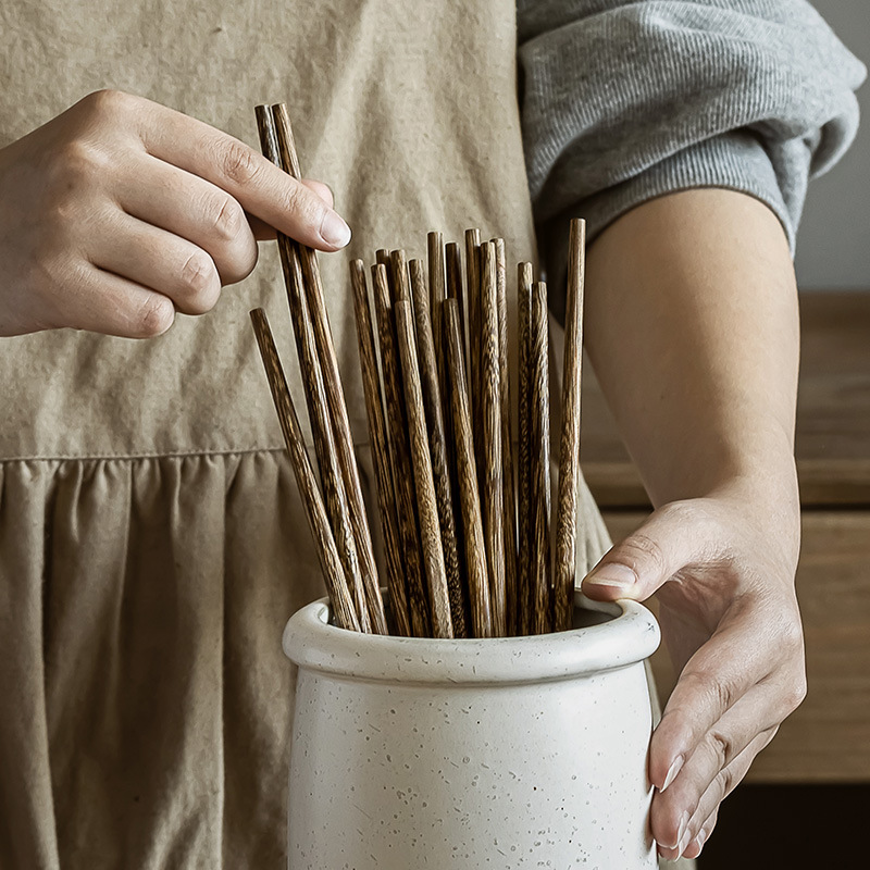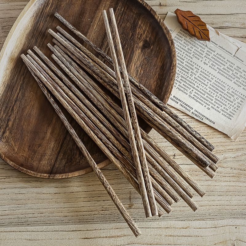日式家用筷子餐具复古木质筷子餐厅实用10双装厨房防滑实木筷