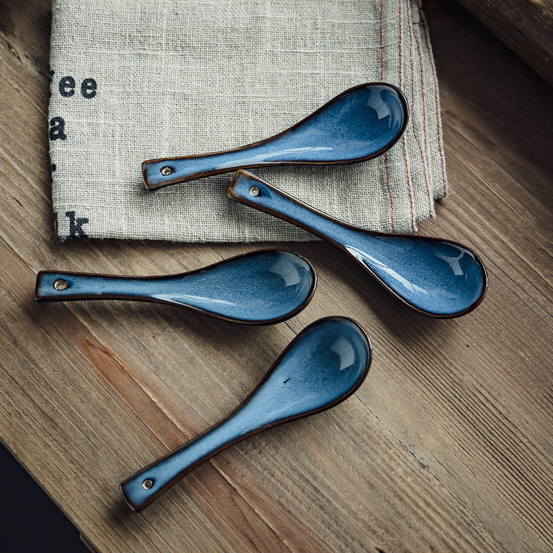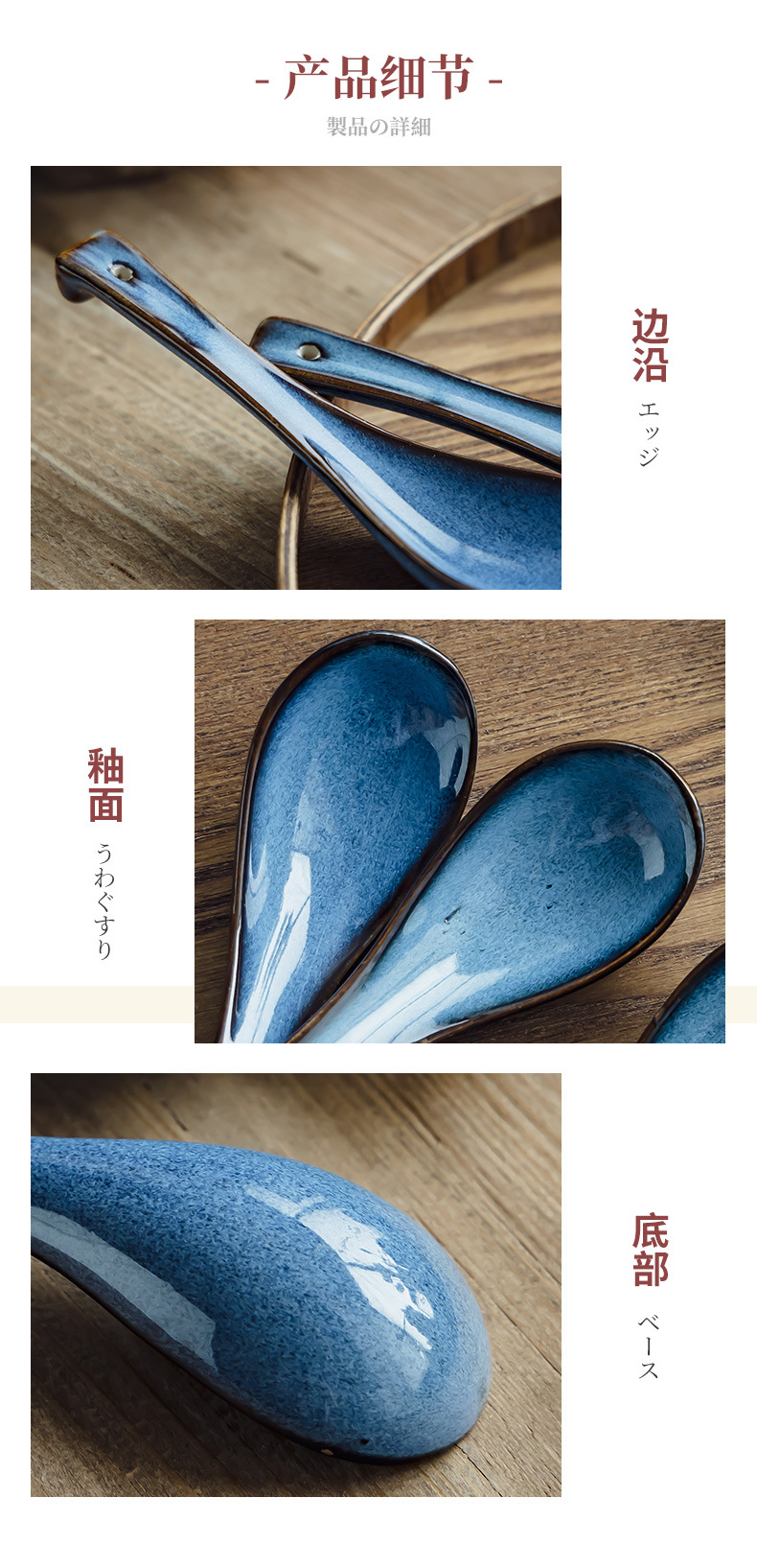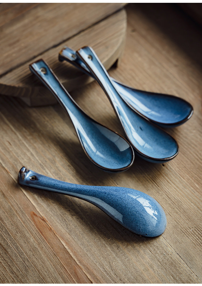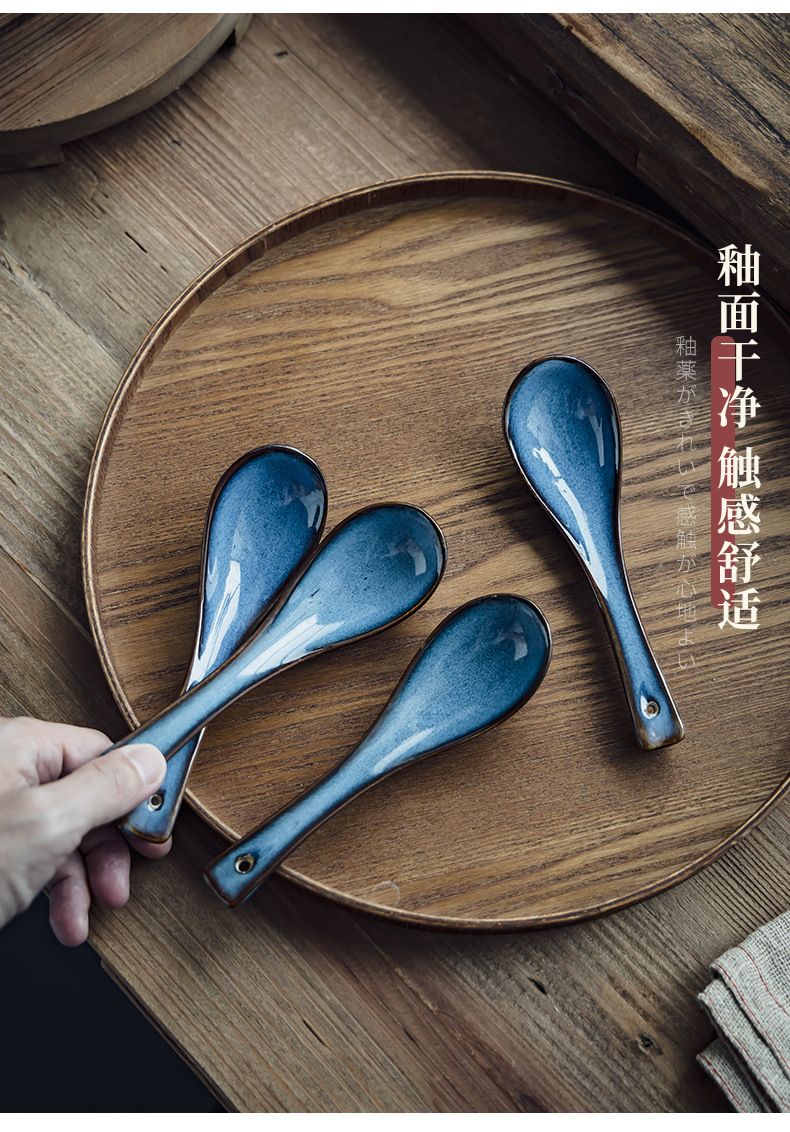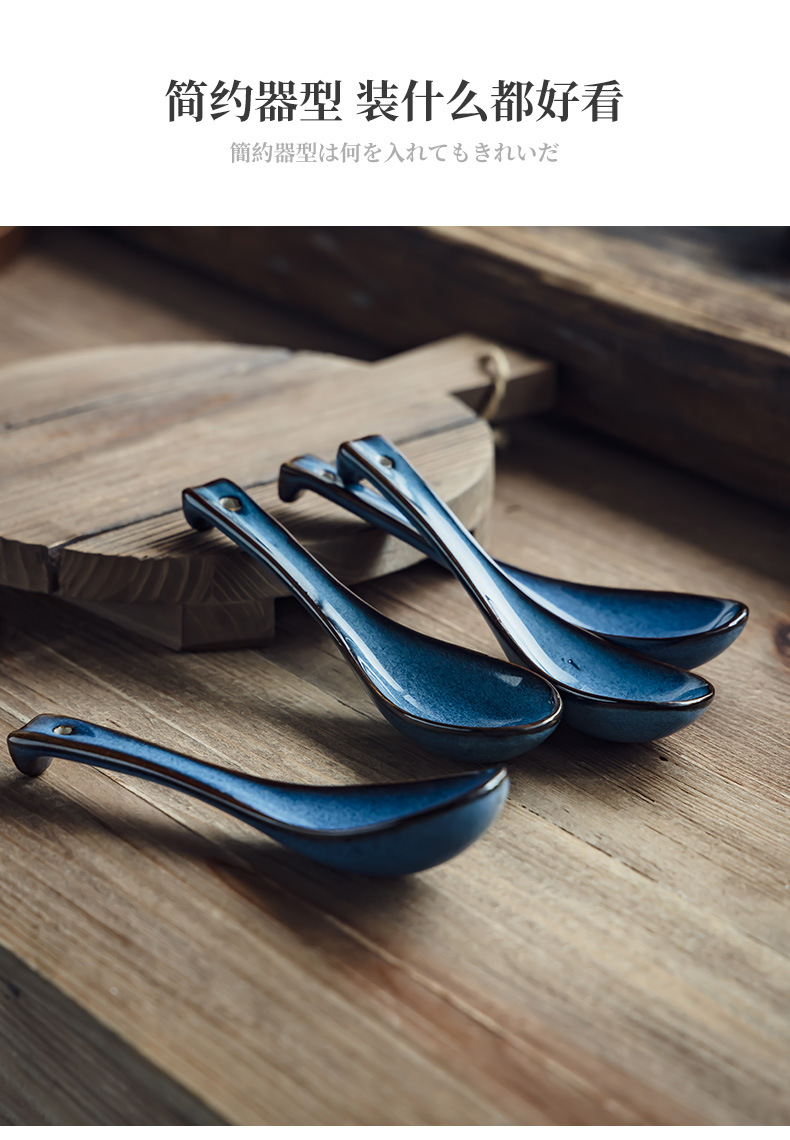 日式和风蓝色陶瓷勺子复古餐勺创意喝汤勺家用调羹小汤勺