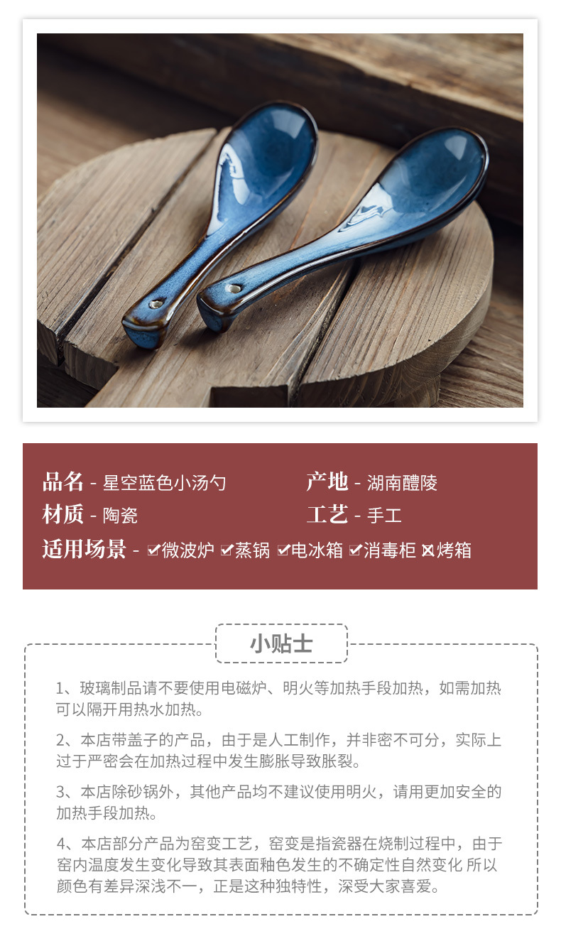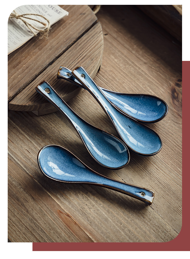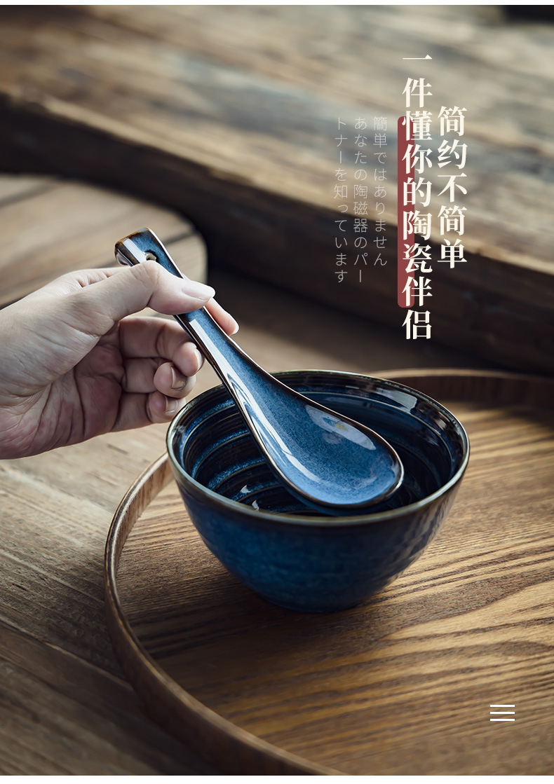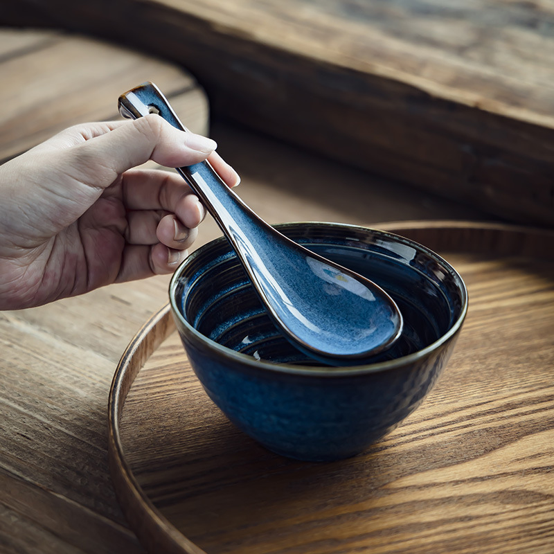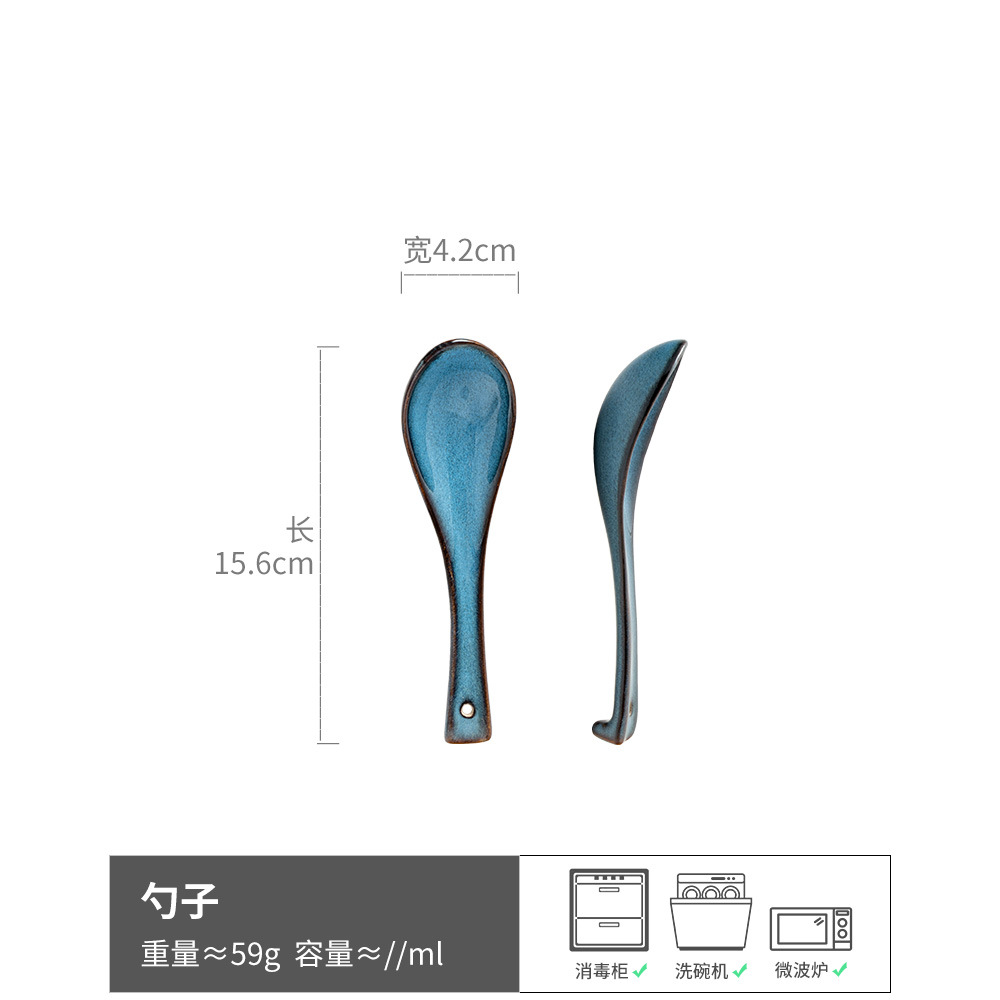 日式和风蓝色陶瓷勺子复古餐勺创意喝汤勺家用调羹小汤勺