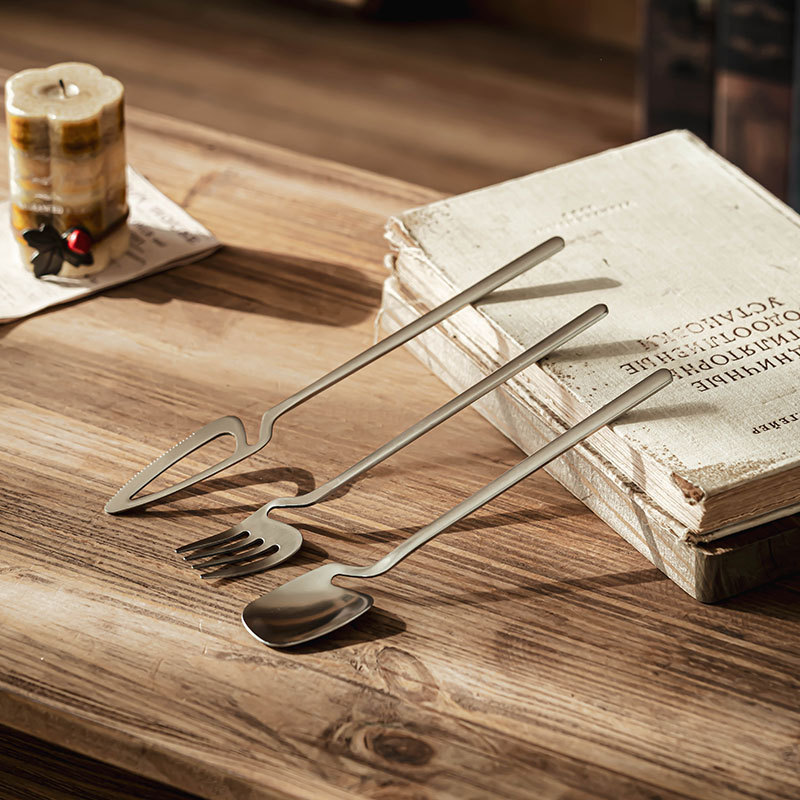 日式复古风刀叉勺套装餐具家用西餐甜品勺高颜值吃饭调羹咖啡勺子