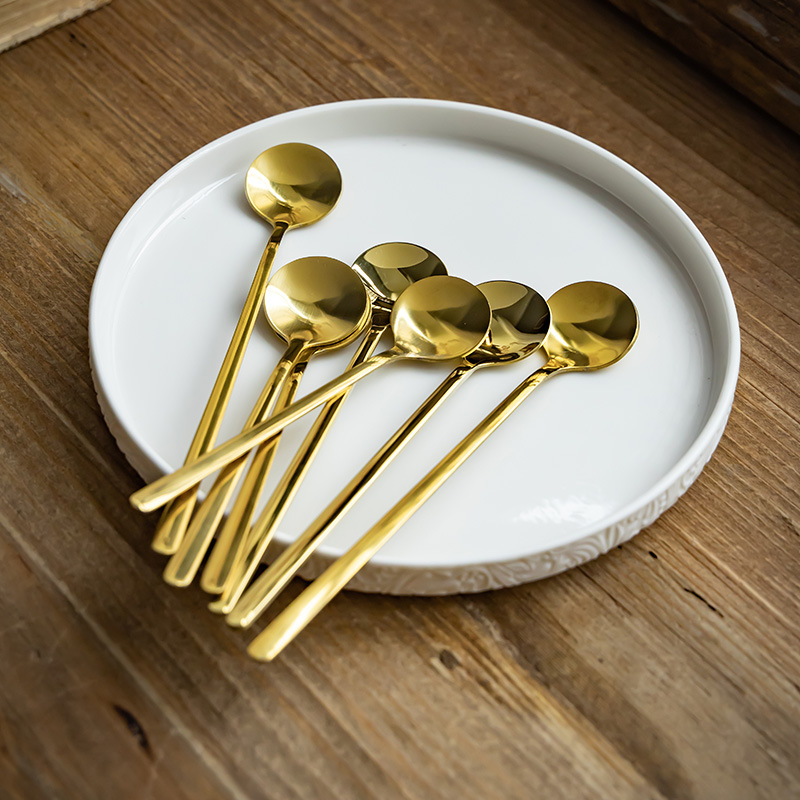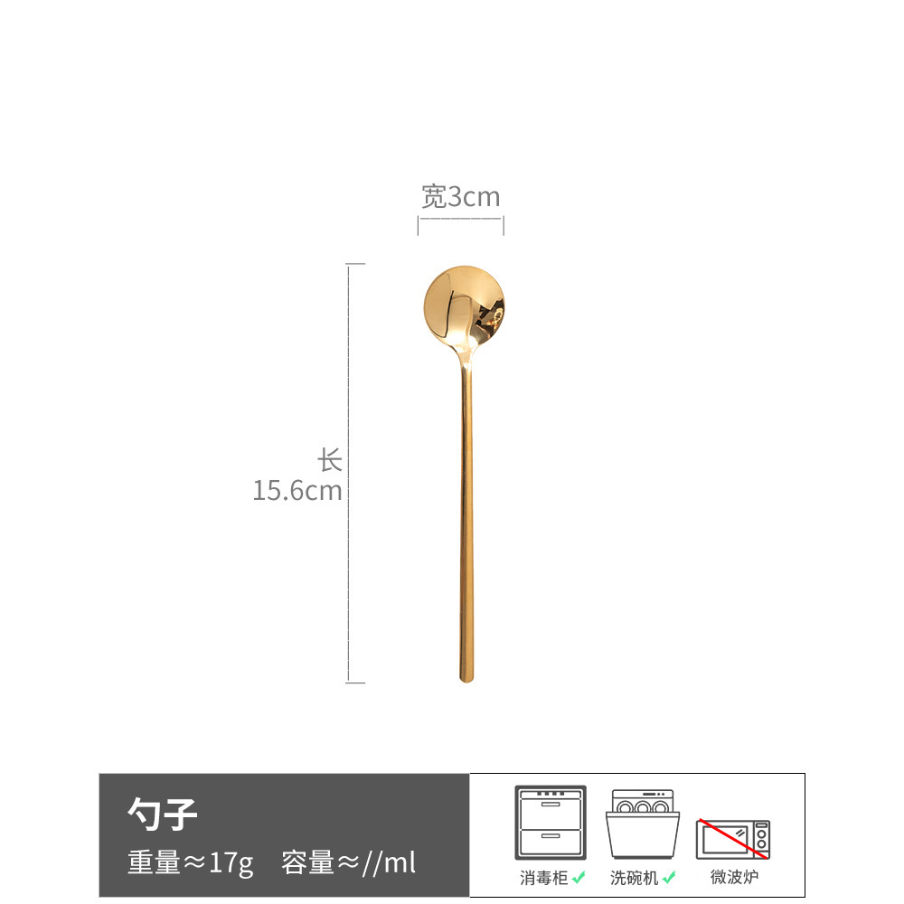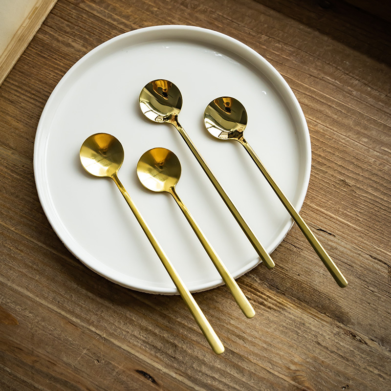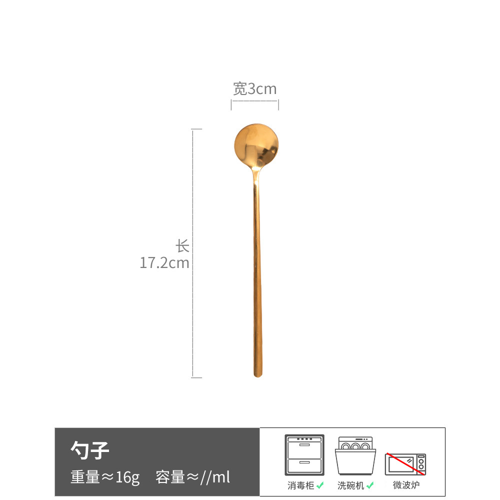 高颜值304不锈钢下午茶咖啡勺西餐餐具甜品勺金色勺子长柄搅拌勺