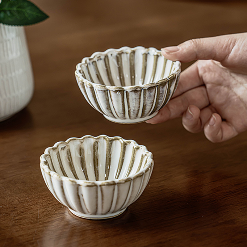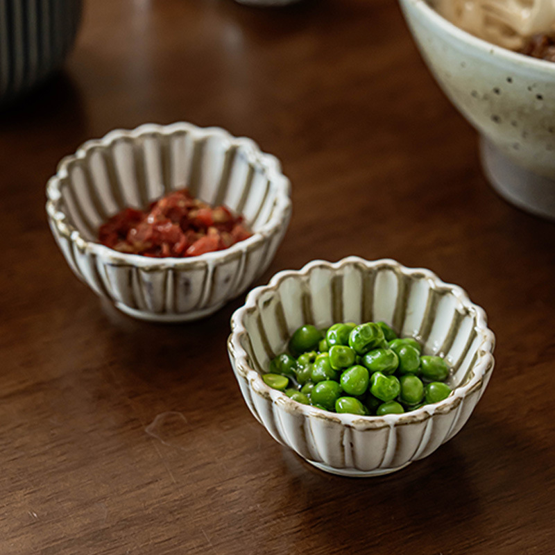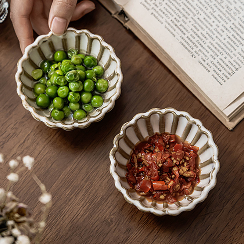 日式花形味碟复古风陶瓷碟子蘸料碟家用小菜碟吐骨碟餐具碗碟
