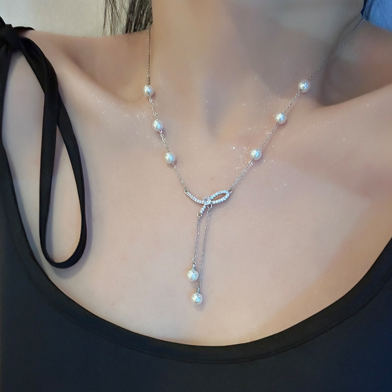 浪漫气质蝴蝶结珍珠流苏项链女轻奢小众颈链设计感高级锁骨链配饰