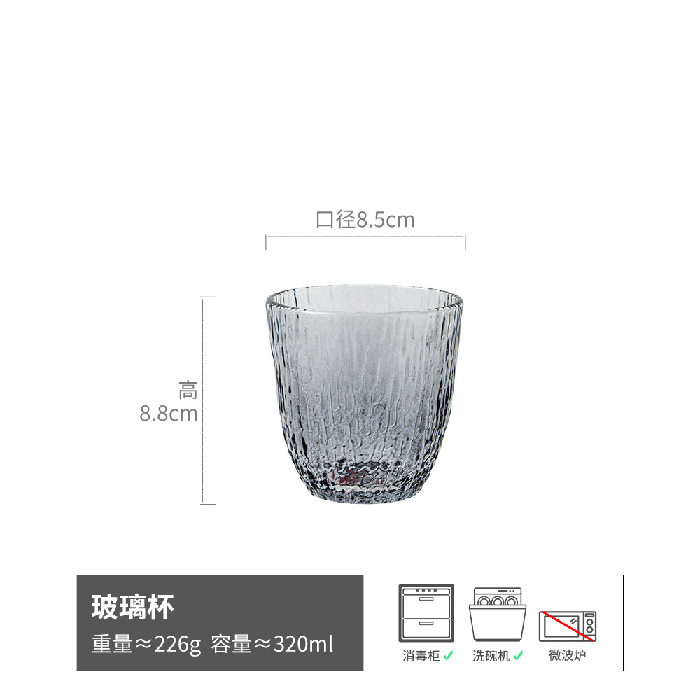 简约纹理感玻璃杯圆形透明水杯日常家用咖啡杯餐厅果汁杯牛奶杯子